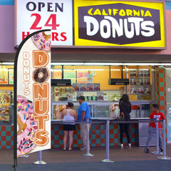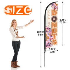 - 【Cost-Effective Advertising】The Donuts sign offer a cost-effective advertising solution compared to other traditional forms of outdoor advertising. This Donuts flag size is (8.2ft/98in) tall and (1.8ft/22in) wide, visible enough from far away, ensures your business stands out from the crowd, grabbing attention and increasing foot traffic.