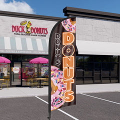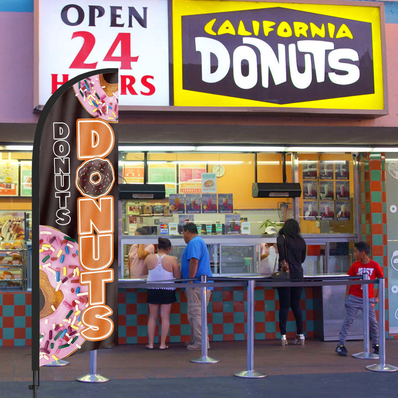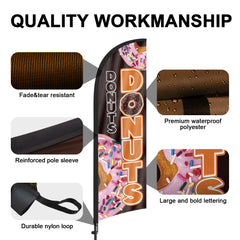 - 【Attention-Grabbing】Donuts feather flags stand tall and sway with the wind, making them highly visible and attention-grabbing. The Donuts flags’ unique shape and vibrant colors make them stand out in crowded environments, attracting many potential customers from a distance.
