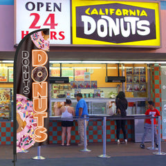 - 【Cost-Effective Advertising】The Donuts sign offer a cost-effective advertising solution compared to other traditional forms of outdoor advertising. This Donuts flag size is (8.2ft/98in) tall and (1.8ft/22in) wide, visible enough from far away, ensures your business stands out from the crowd, grabbing attention and increasing foot traffic.