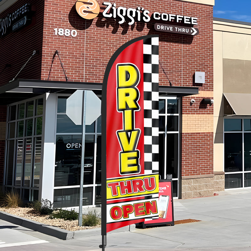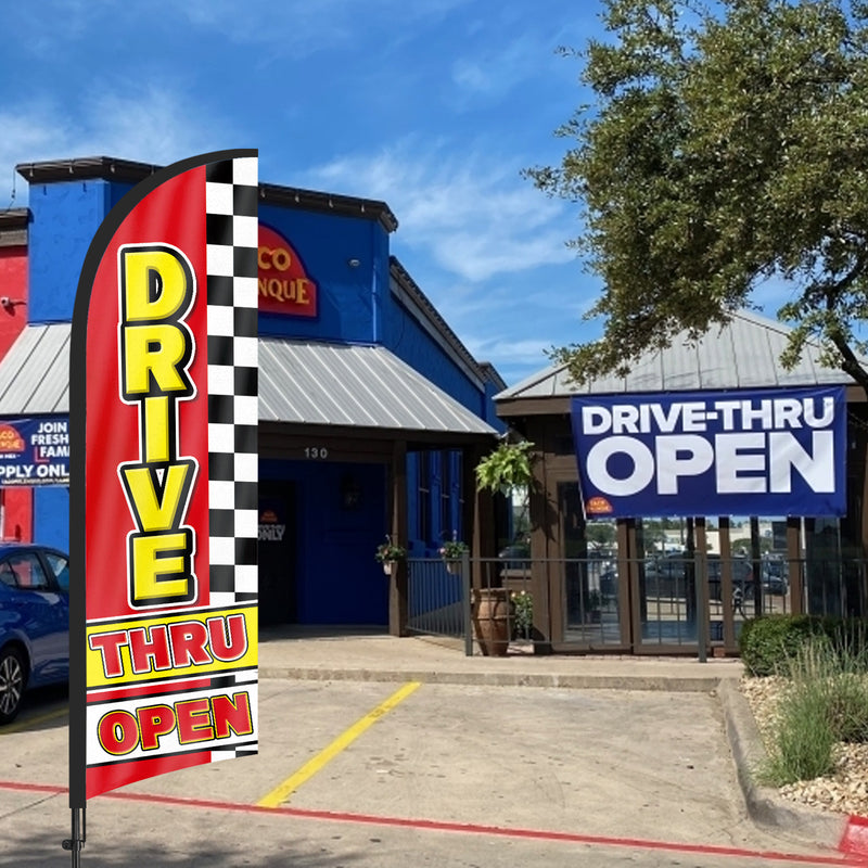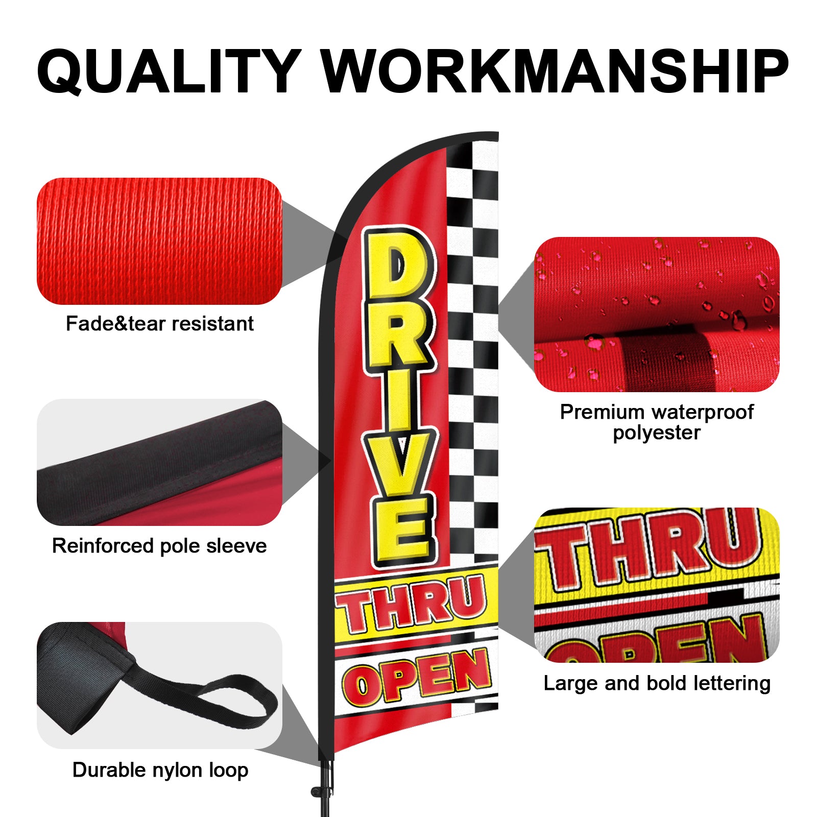 8ft Drive-in Open Restaurant Feather Flag with Pole and Stake