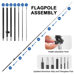 - 【Portable and Easy Setup】This feather flag pole kit includes 1 swooper flag+6 rods+1 ground stake and comes with 1 carry bag. They can be quickly set up and taken down, requiring minimal effort.