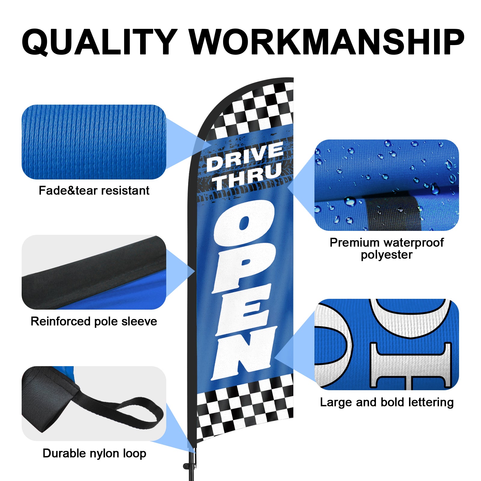 - 【Weather Resistance】These feather flags are designed to withstand various weather conditions, high-quality aluminum and fiberglass pole, tear resistant polyester fabric making it sturdy and heavy-duty to be held up well even in rain, snow, sleet and strong winds.