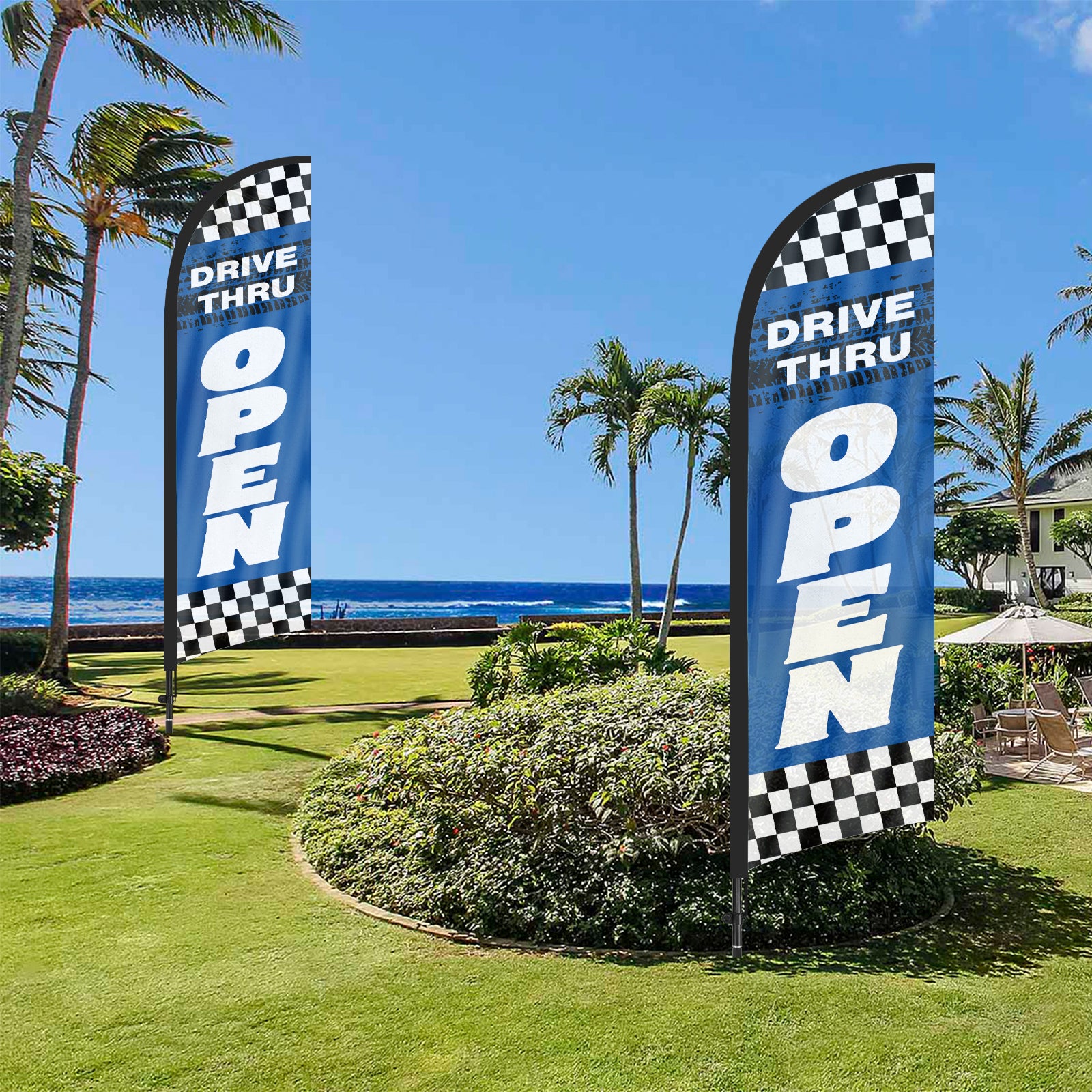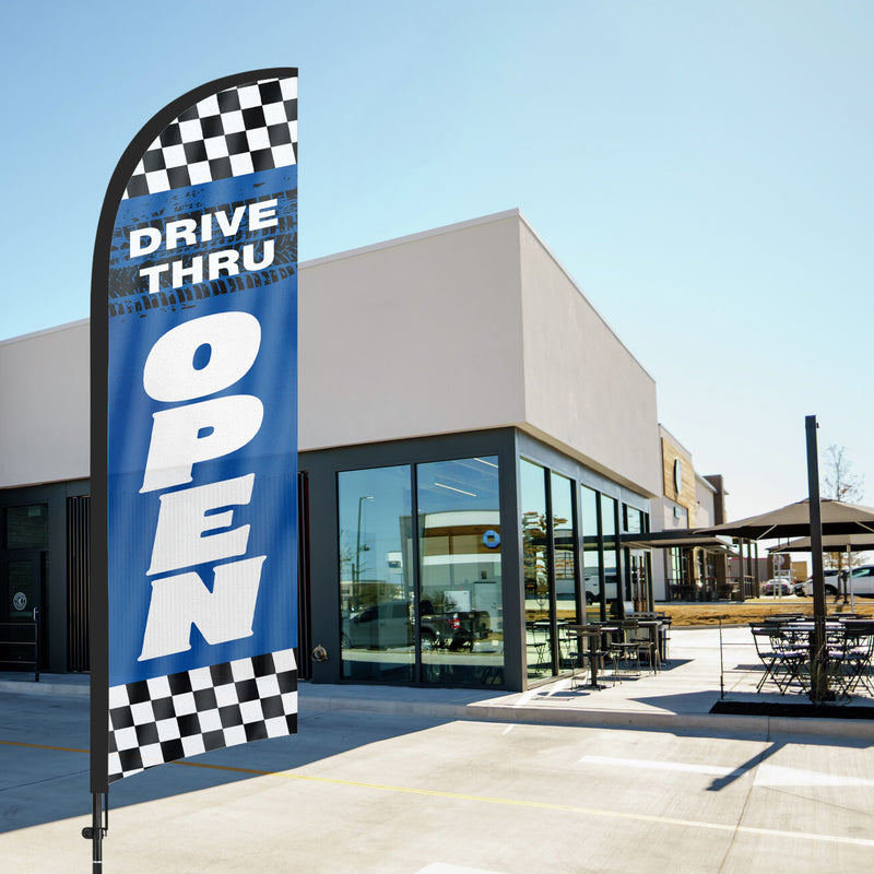 8ft Drive Thru Open Restaurant Feather Flag with Pole and Stake