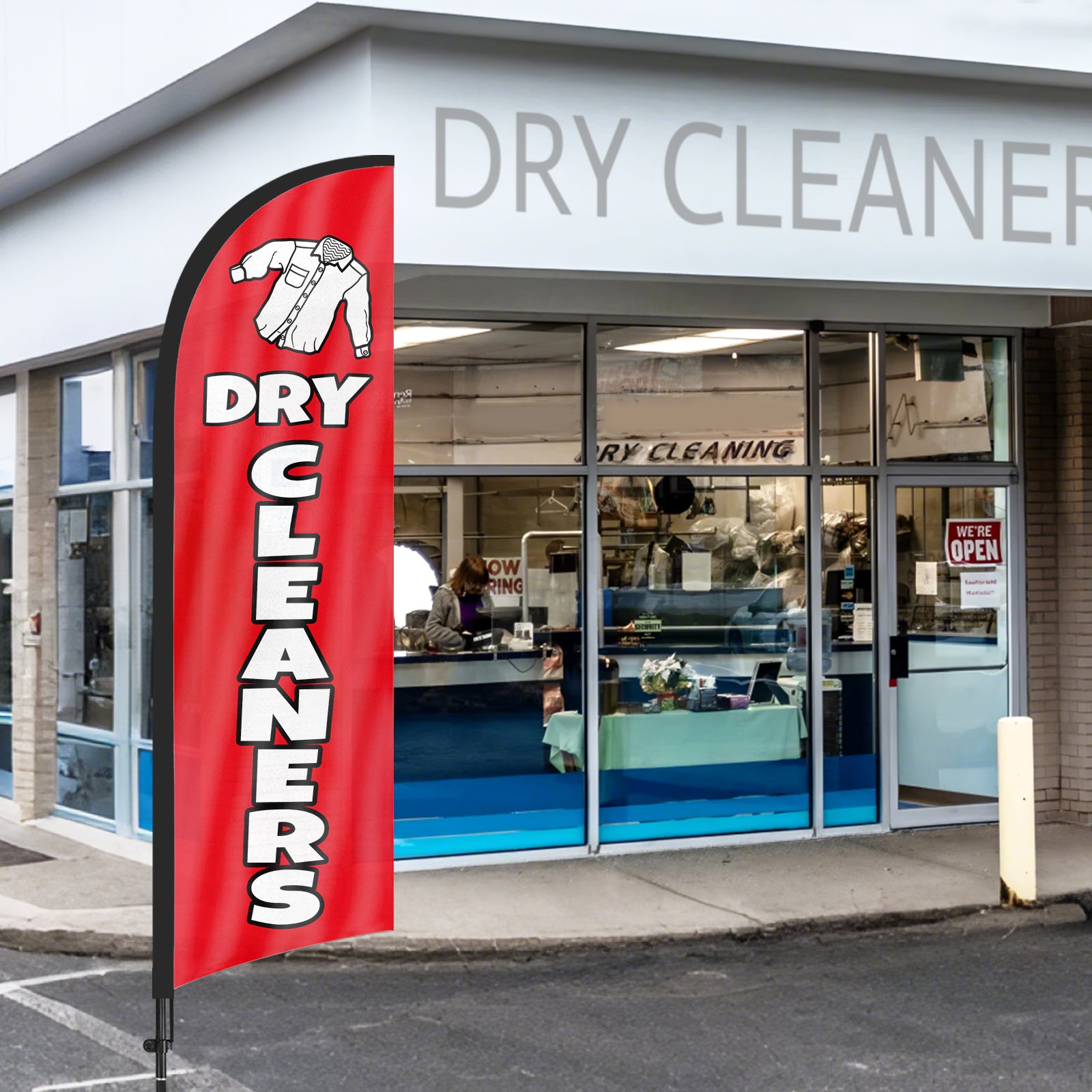 8Ft Dry Cleaners Red Feather Flag with Pole & Stake
