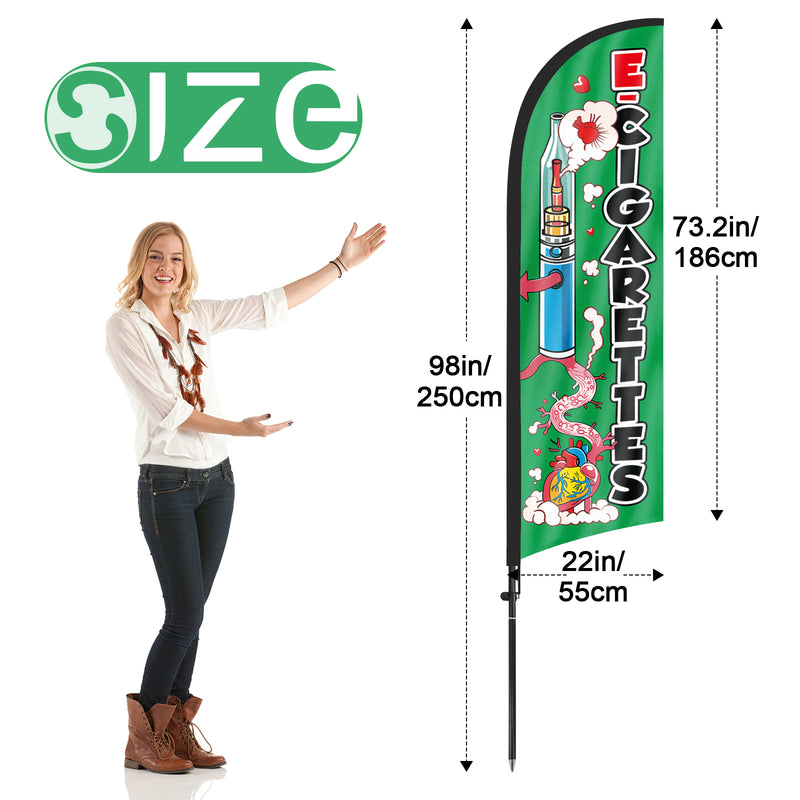 - 【Cost-Effective Advertising】The sign offer a cost-effective advertising solution compared to other traditional forms of outdoor advertising. This flag size is (8.2ft/98in) tall and (1.8ft/22in) wide, visible enough from far away, ensures your business stands out from the crowd, grabbing attention and increasing foot traffic.