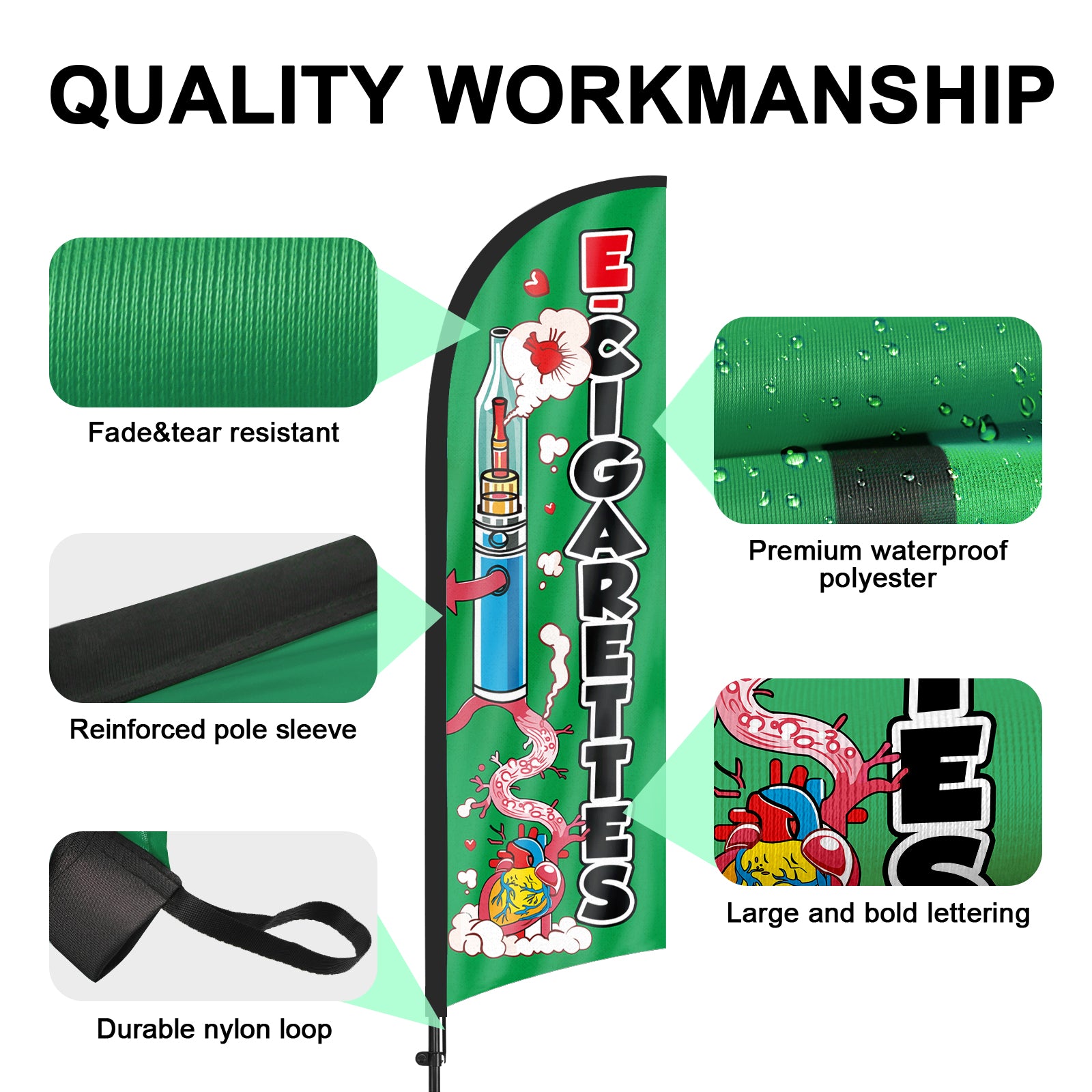 - 【Weather Resistance】These feather flags are designed to withstand various weather conditions, high-quality aluminum and fiberglass pole, tear resistant polyester fabric making it sturdy and heavy-duty to be held up well even in rain, snow, sleet and strong winds.