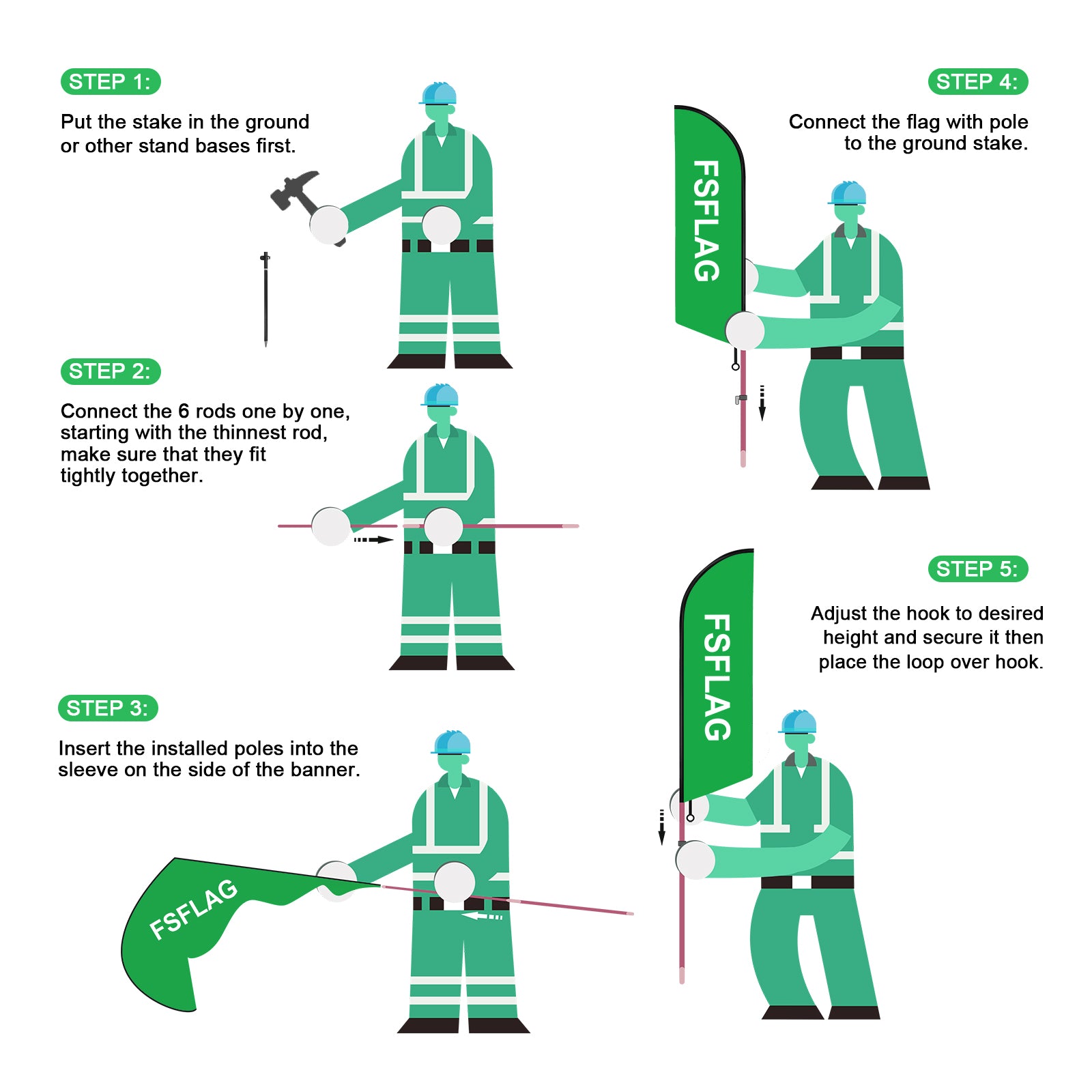 - 【Portable and Easy Setup】This feather flag pole kit includes 1 swooper flag+6 rods+1 ground stake and comes with 1 carry bag. They can be quickly set up and taken down, requiring minimal effort.