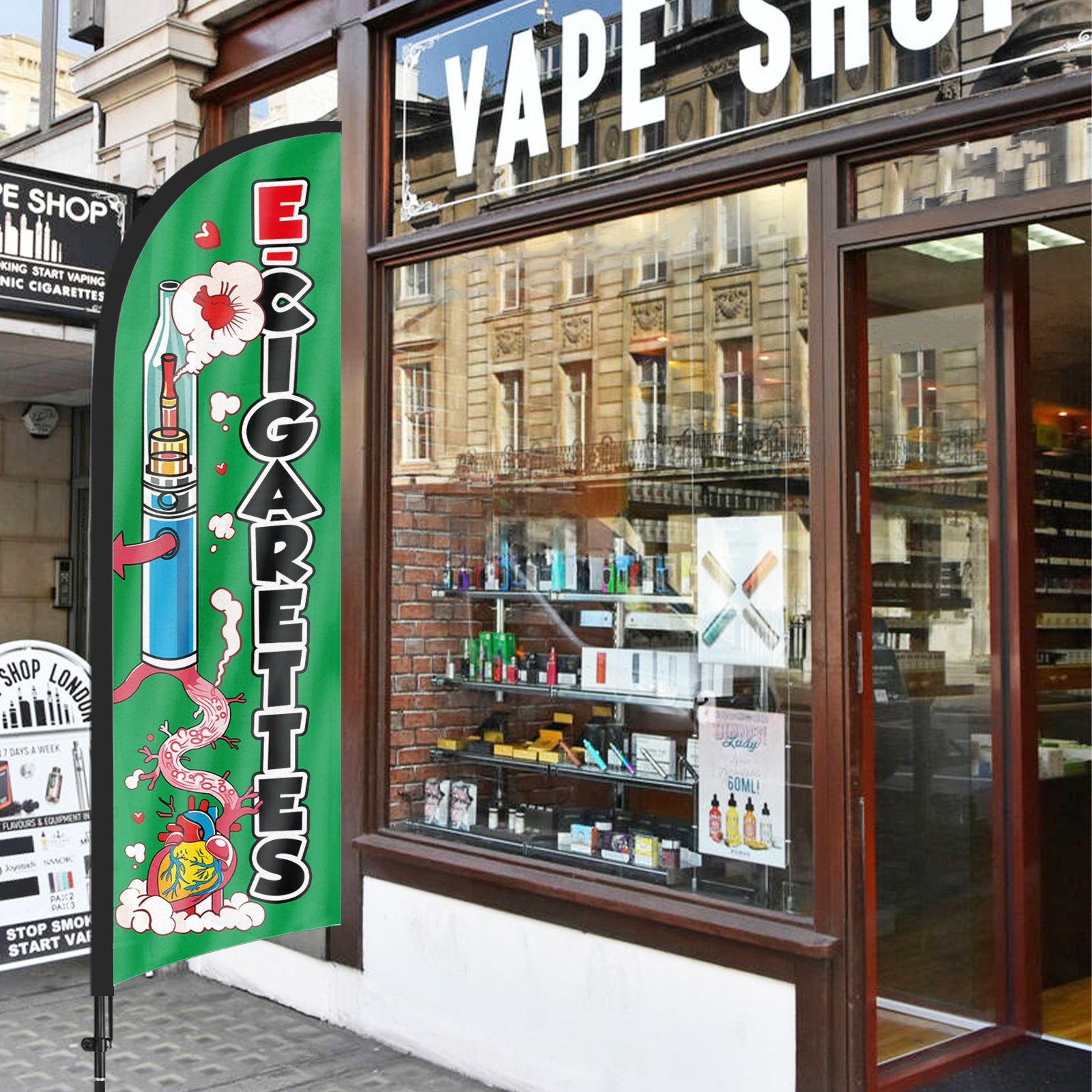 8ft E-cigarettes Green Feather Flag Pole Kit
