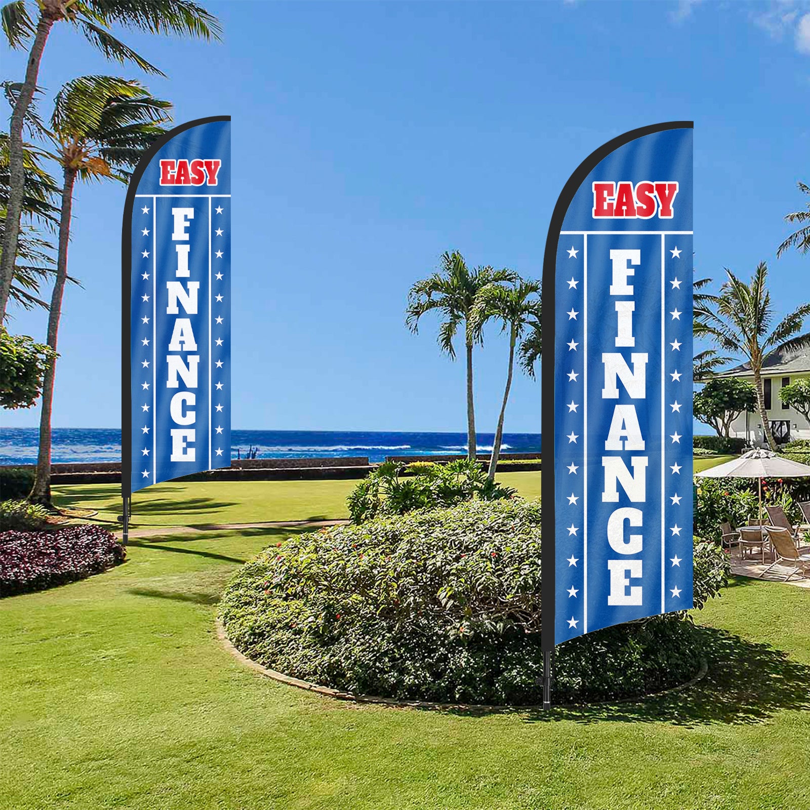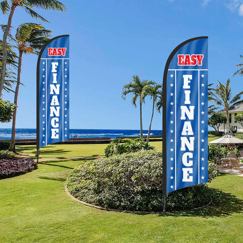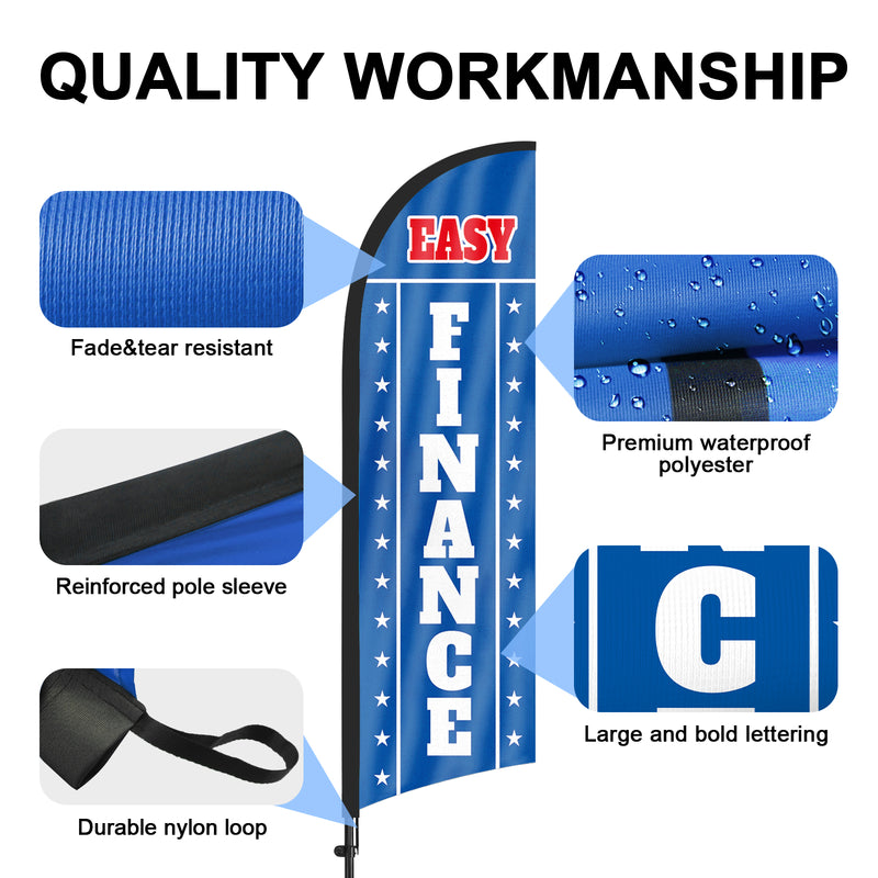8ft Easy Finance Blue Feather Flag with Pole and Stake