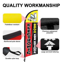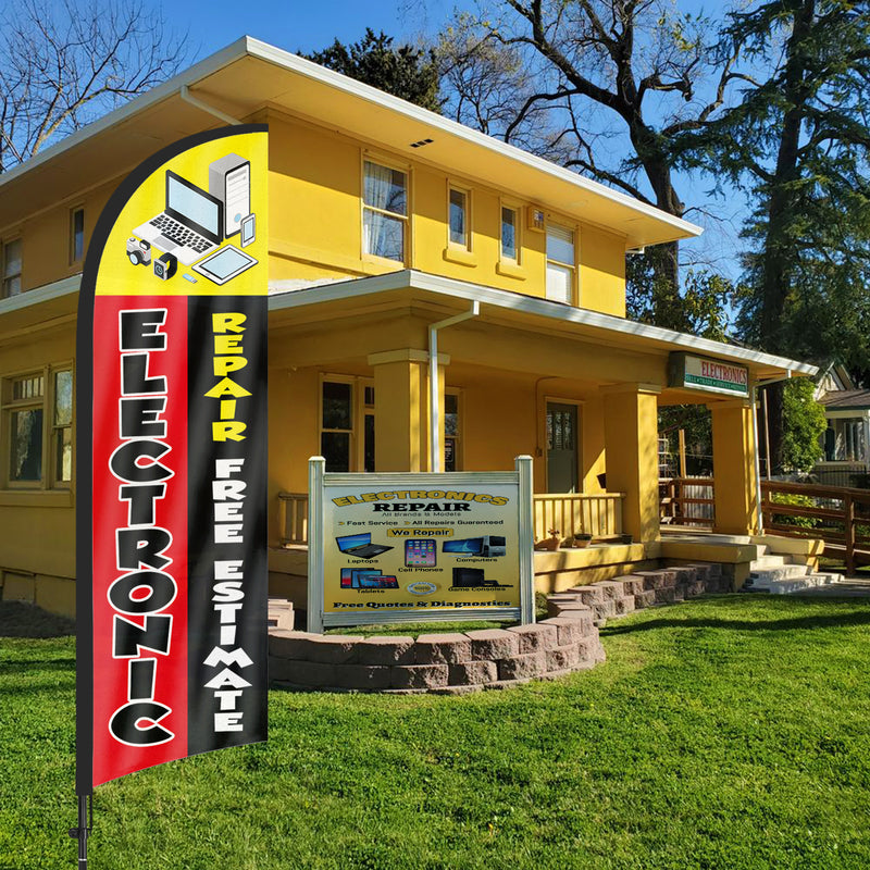- 【Attention-Grabbing】Electronic Repair feather flags stand tall and sway with the wind, making them highly visible and attention-grabbing. The Electronic Repair flags’ unique shape and vibrant colors make them stand out in crowded environments, attracting many potential customers from a distance.