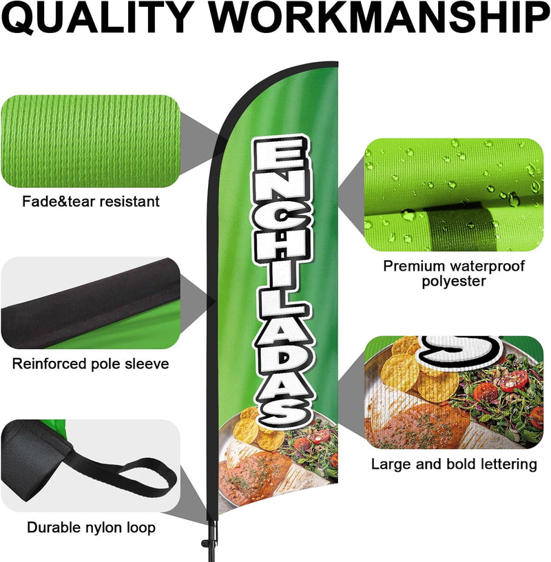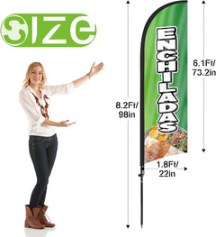 - 【Cost-Effective Advertising】The Enchiladas sign offer a cost-effective advertising solution compared to other traditional forms of outdoor advertising. This Enchiladas flag size is (8.2ft/98in) tall and (1.8ft/22in) wide, visible enough from far away, ensures your business stands out from the crowd, grabbing attention and increasing foot traffic.