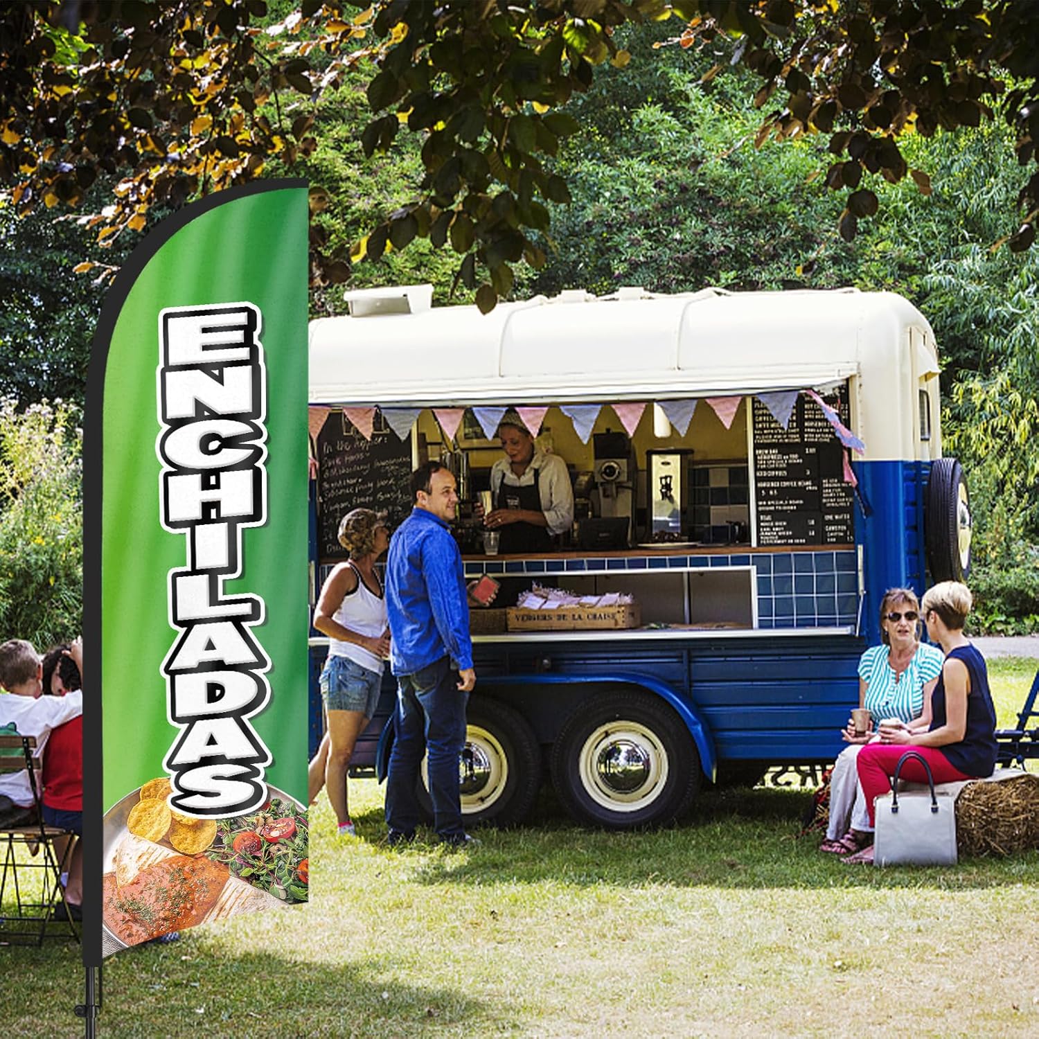 - 【Attention-Grabbing】Enchiladas feather flags stand tall and sway with the wind, making them highly visible and attention-grabbing. The Enchiladas flags’ unique shape and vibrant colors make them stand out in crowded environments, attracting many potential customers from a distance.