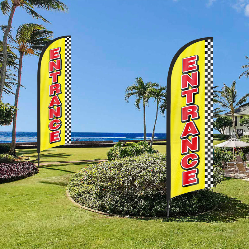 8Ft Entrance Yellow Feather Flag with Pole & Stake