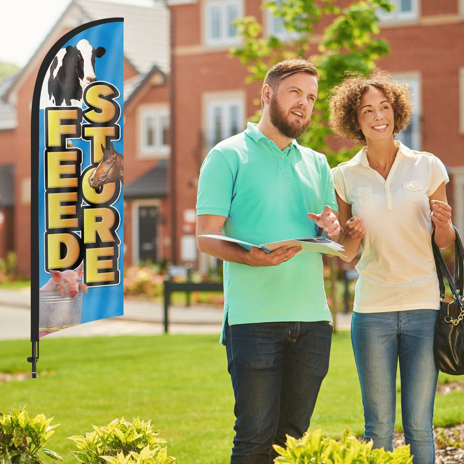- 【Attention-Grabbing】Feed Store feather flags stand tall and sway with the wind, making them highly visible and attention-grabbing. The Feed Store flags’ unique shape and vibrant colors make them stand out in crowded environments, attracting many potential customers from a distance.