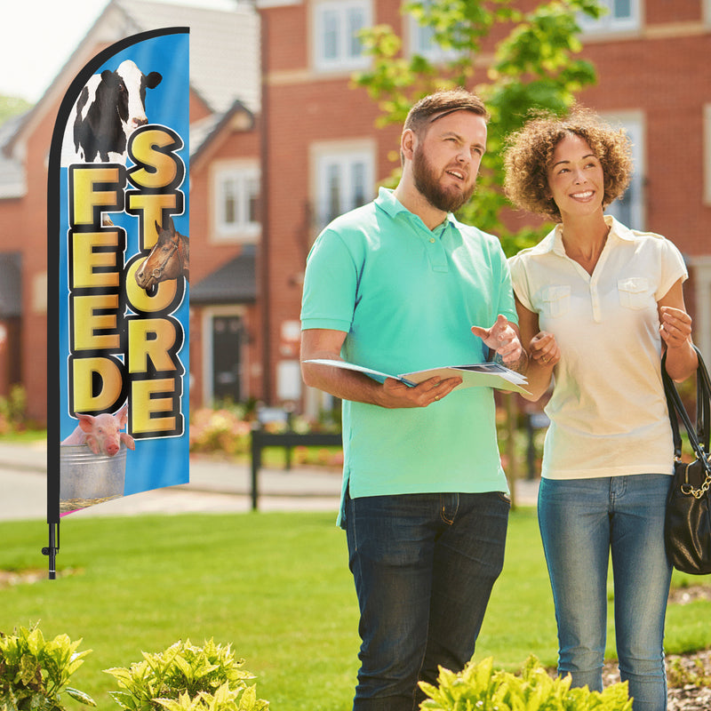 8Ft Feed Store Feather Flag with Pole & Stake