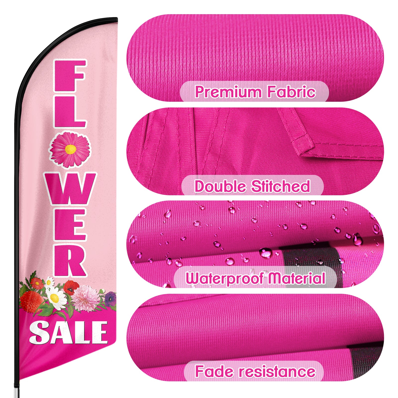 - 【Excellent Advertisement Tool】The Flower Sale feather flag size is very large (8Ft/96in x 2 Ft/25in) visible enough from far away, you may put the feather banner up in front of your business, at the entry or on the sidewalk.