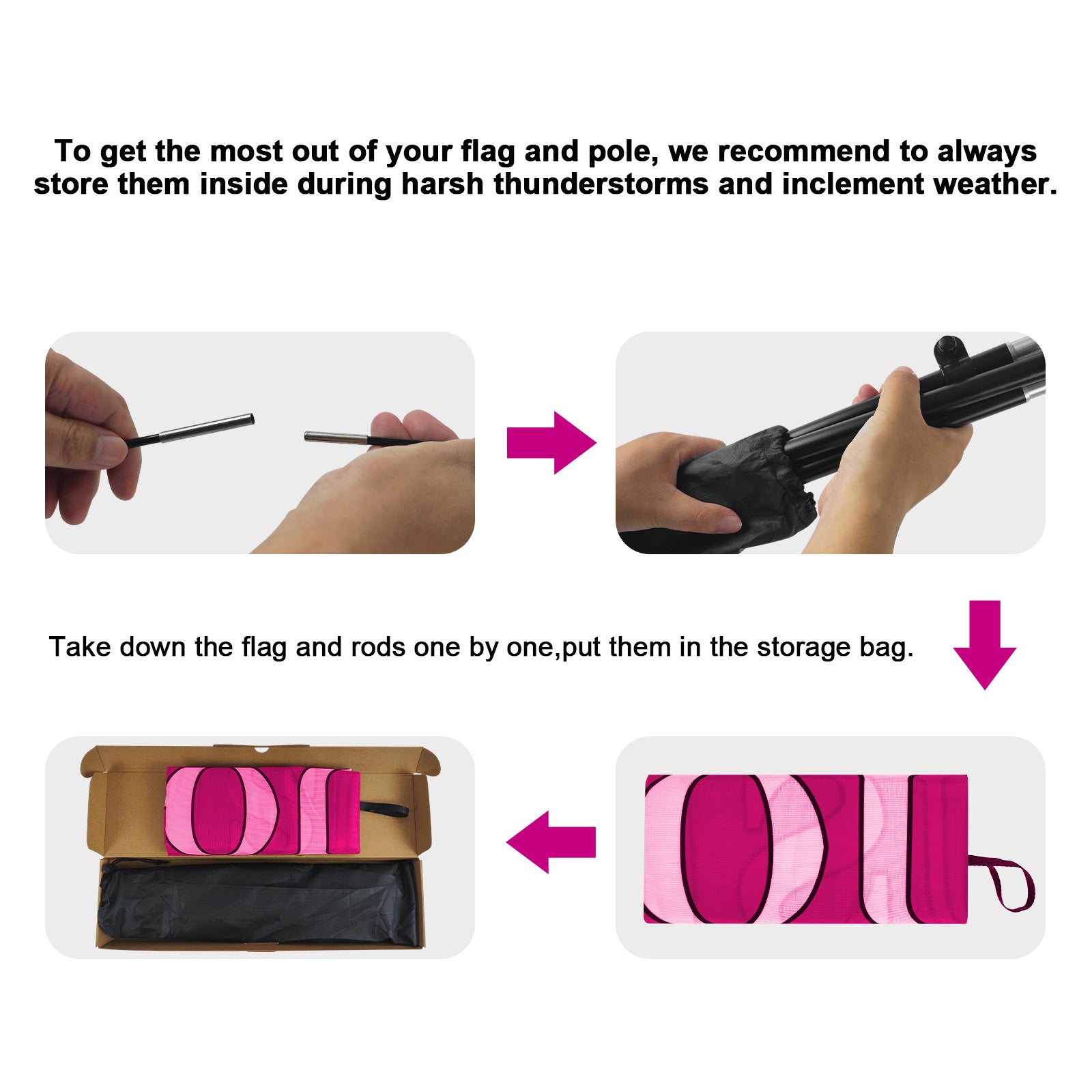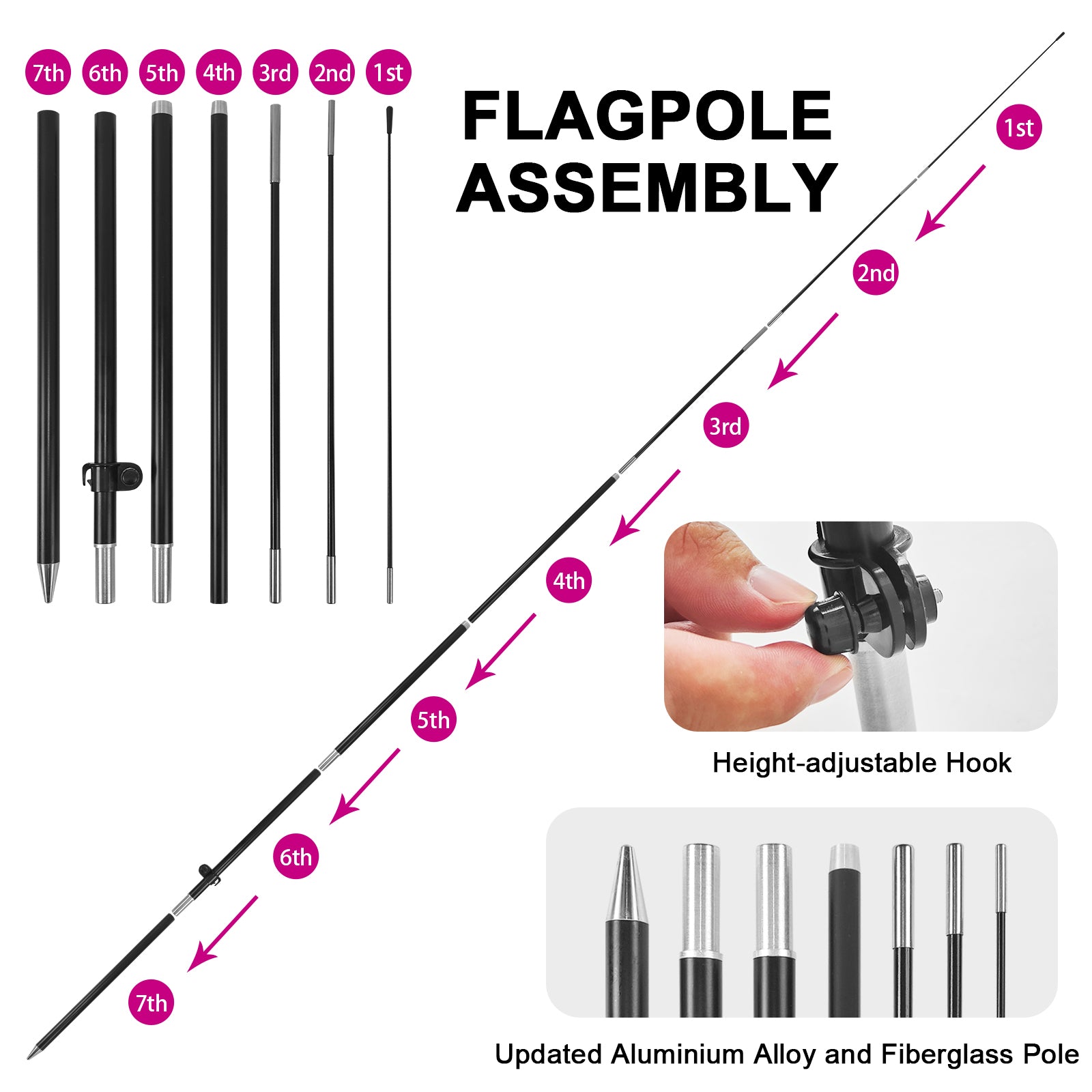 - 【Portable and Easy Setup】This feather flag pole kit includes 1 swooper flag+6 rods+1 ground stake and comes with 1 carry bag. They can be quickly set up and taken down, requiring minimal effort.