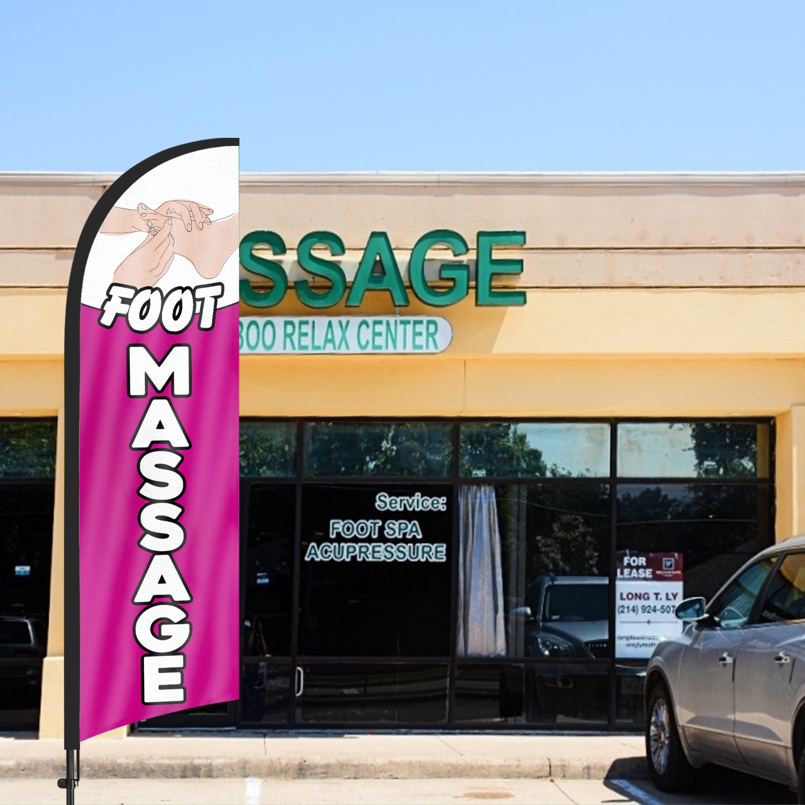 8Ft Foot Massage Feather Flag with Pole & Stake