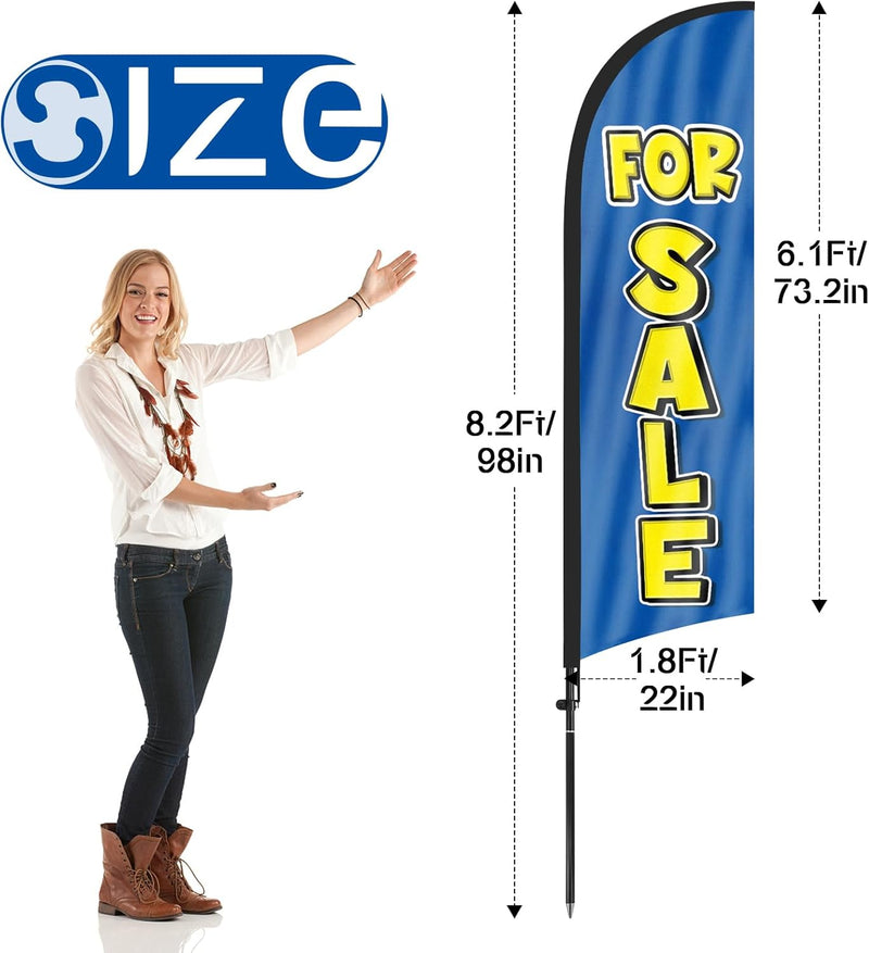- 【Cost-Effective Advertising】The For Sale sign offer a cost-effective advertising solution compared to other traditional forms of outdoor advertising. This For Sale flag size is (8.2ft/98in) tall and (1.8ft/22in) wide, visible enough from far away, ensures your business stands out from the crowd, grabbing attention and increasing foot traffic.
