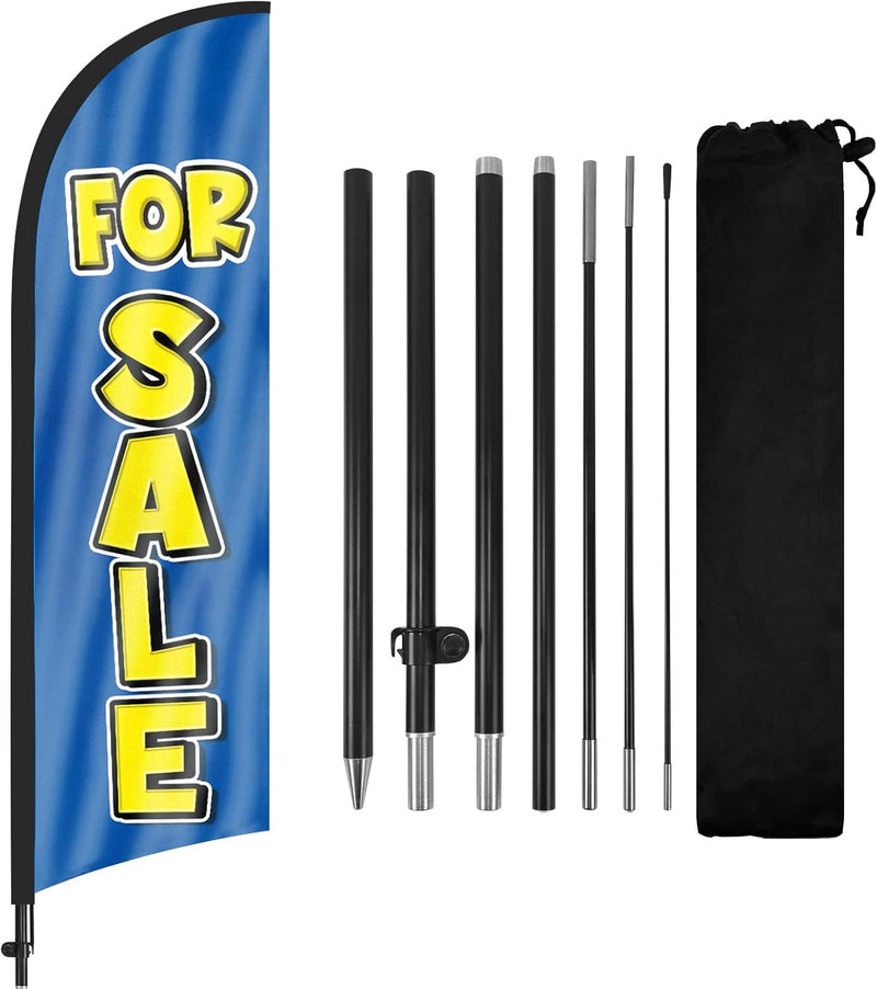 - 【Portable and Easy Setup】This For Sale feather flag pole kit includes 1 swooper flag+6 rods+1 ground stake and comes with 1 carry bag. They can be quickly set up and taken down, requiring minimal effort.