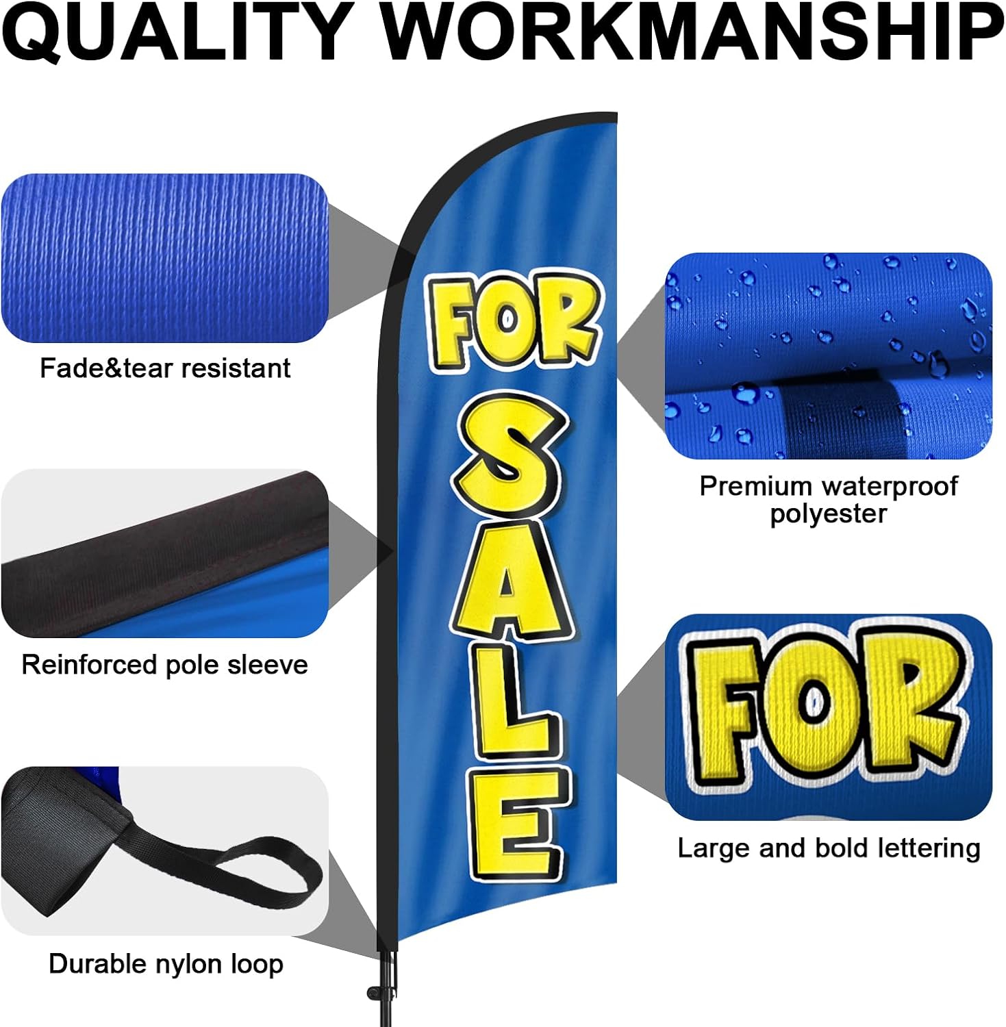 - 【Attention-Grabbing】For Sale feather flags stand tall and sway with the wind, making them highly visible and attention-grabbing. The For Sale flags’ unique shape and vibrant colors make them stand out in crowded environments, attracting many potential customers from a distance.