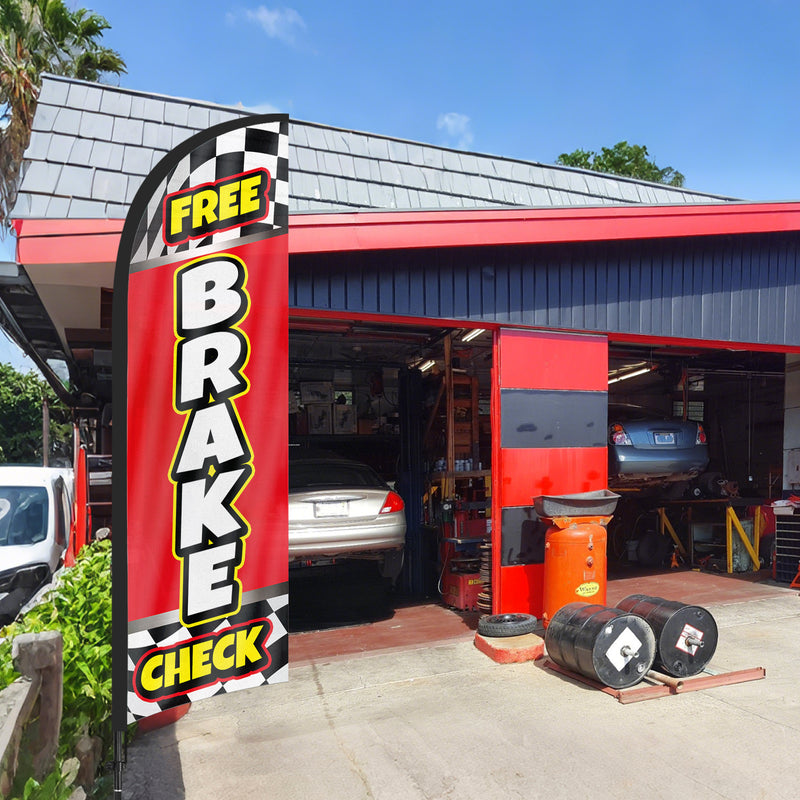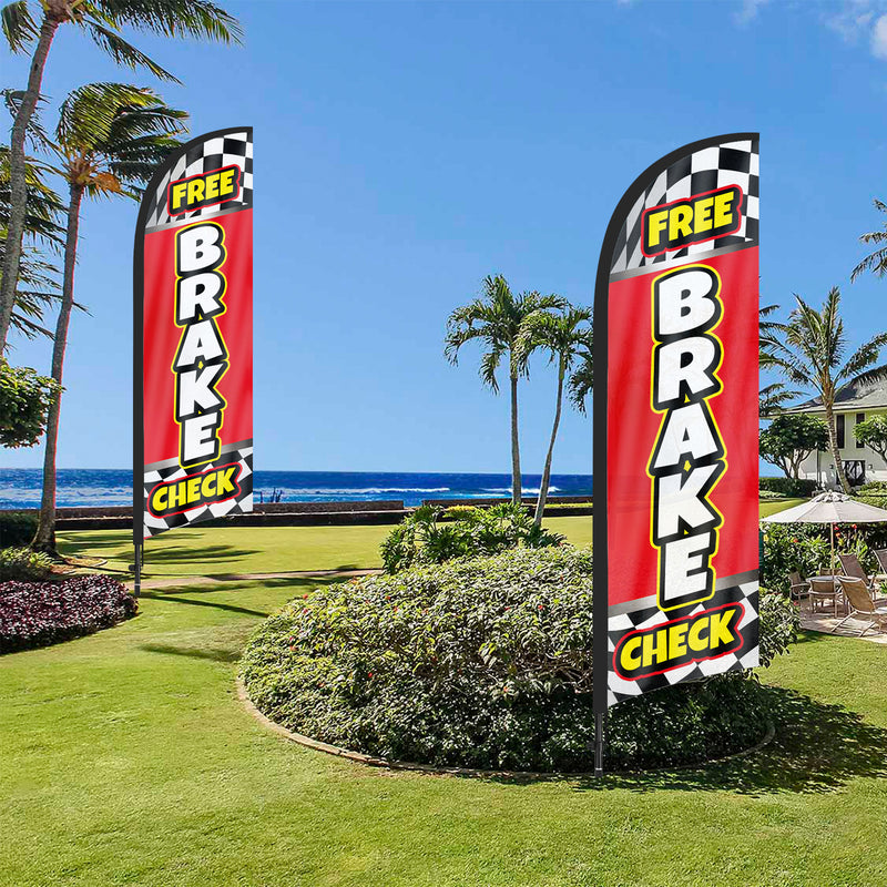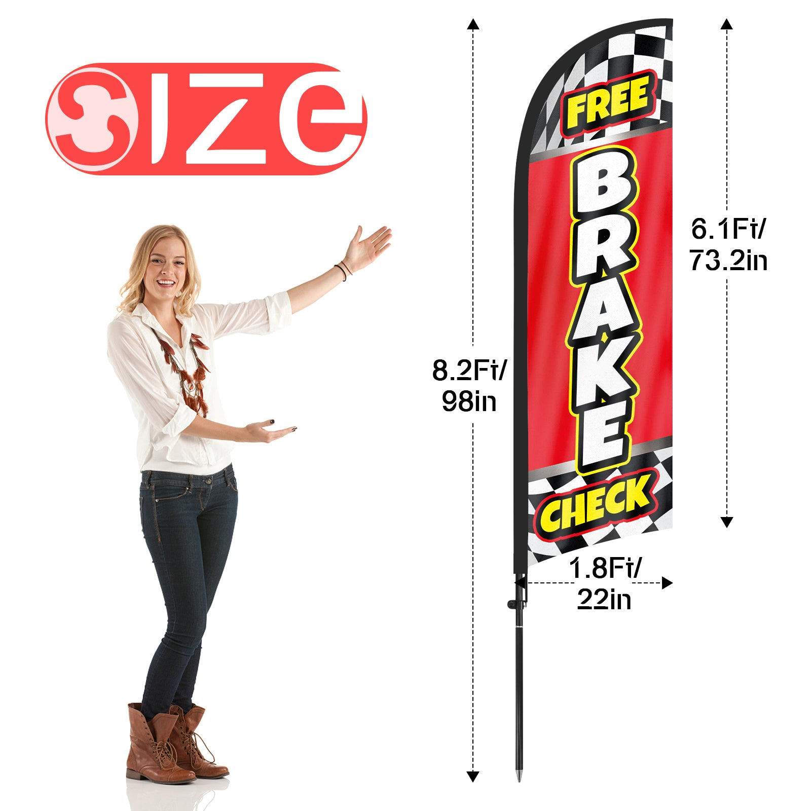 - 【Cost-Effective Advertising】The Free Brake Check sign offer a cost-effective advertising solution compared to other traditional forms of outdoor advertising. This Free Brake Check flag size is (8.2ft/98in) tall and (1.8ft/22in) wide, visible enough from far away, ensures your business stands out from the crowd, grabbing attention and increasing foot traffic.