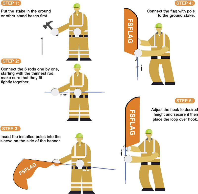 - 【Portable and Easy Setup】This BBQ feather flag pole kit includes 1 swooper flag+6 rods+1 ground stake and comes with 1 carry bag. They can be quickly set up and taken down, requiring minimal effort.