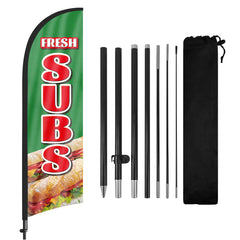 - 【Portable and Easy Setup】This Fresh Subs feather flag pole kit includes 1 swooper flag+6 rods+1 ground stake and comes with 1 storage bag. They can be quickly set up and taken down, requiring minimal effort.