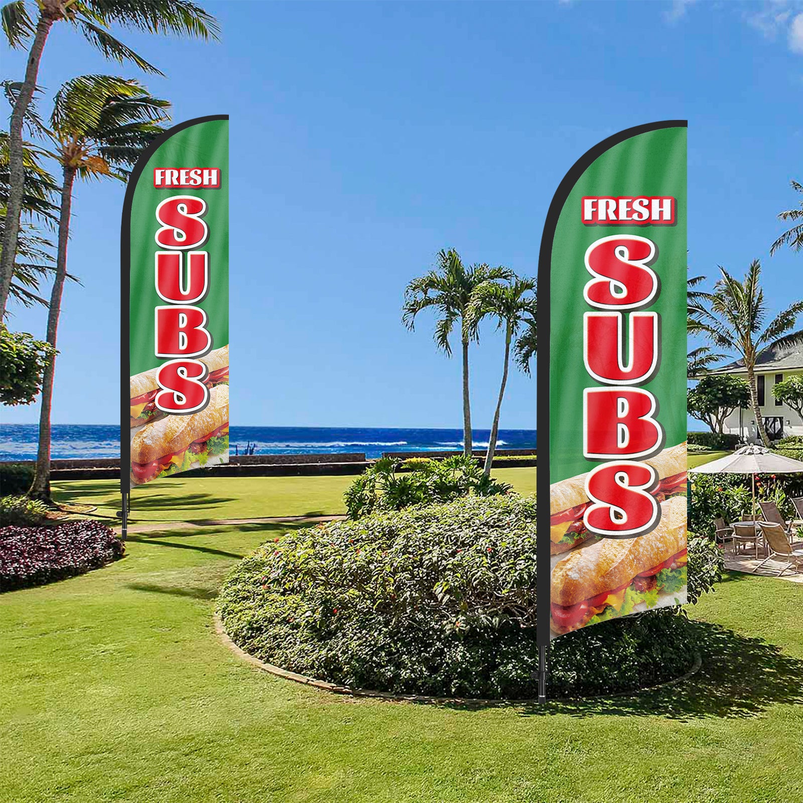 - 【Attention-Grabbing】Fresh Subs feather flags stand tall and sway with the wind, making them highly visible and attention-grabbing. The Fresh Subs flags’ unique shape and vibrant colors make them stand out in crowded environments, attracting many potential customers from a distance.