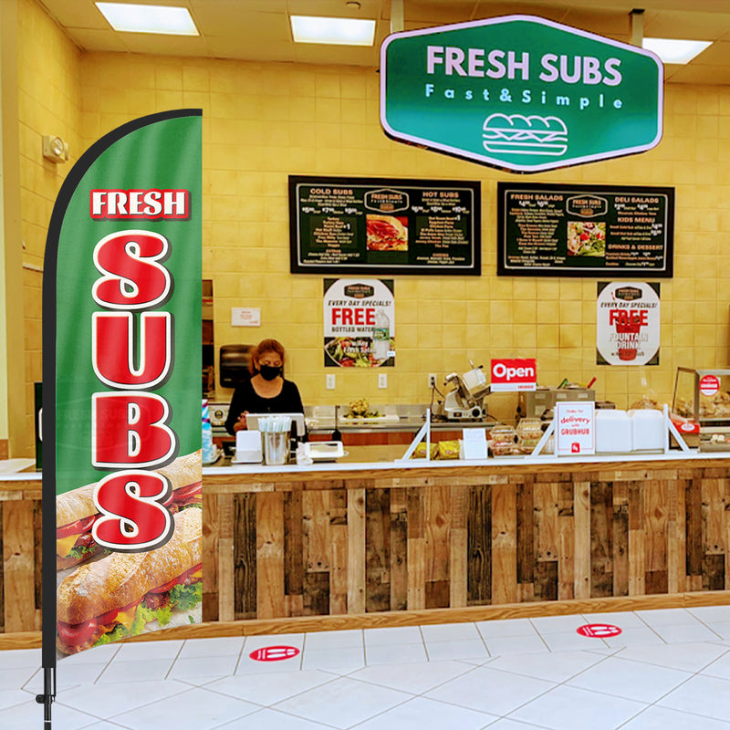 8ft Fresh Subs 01 Feather Flag Kit-Advertising Banner with Pole and Stake