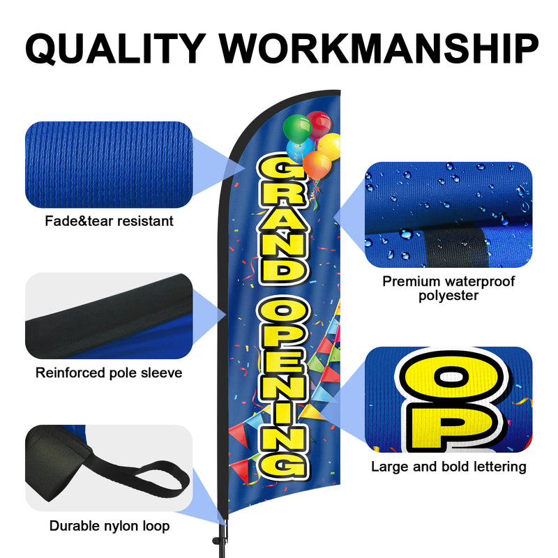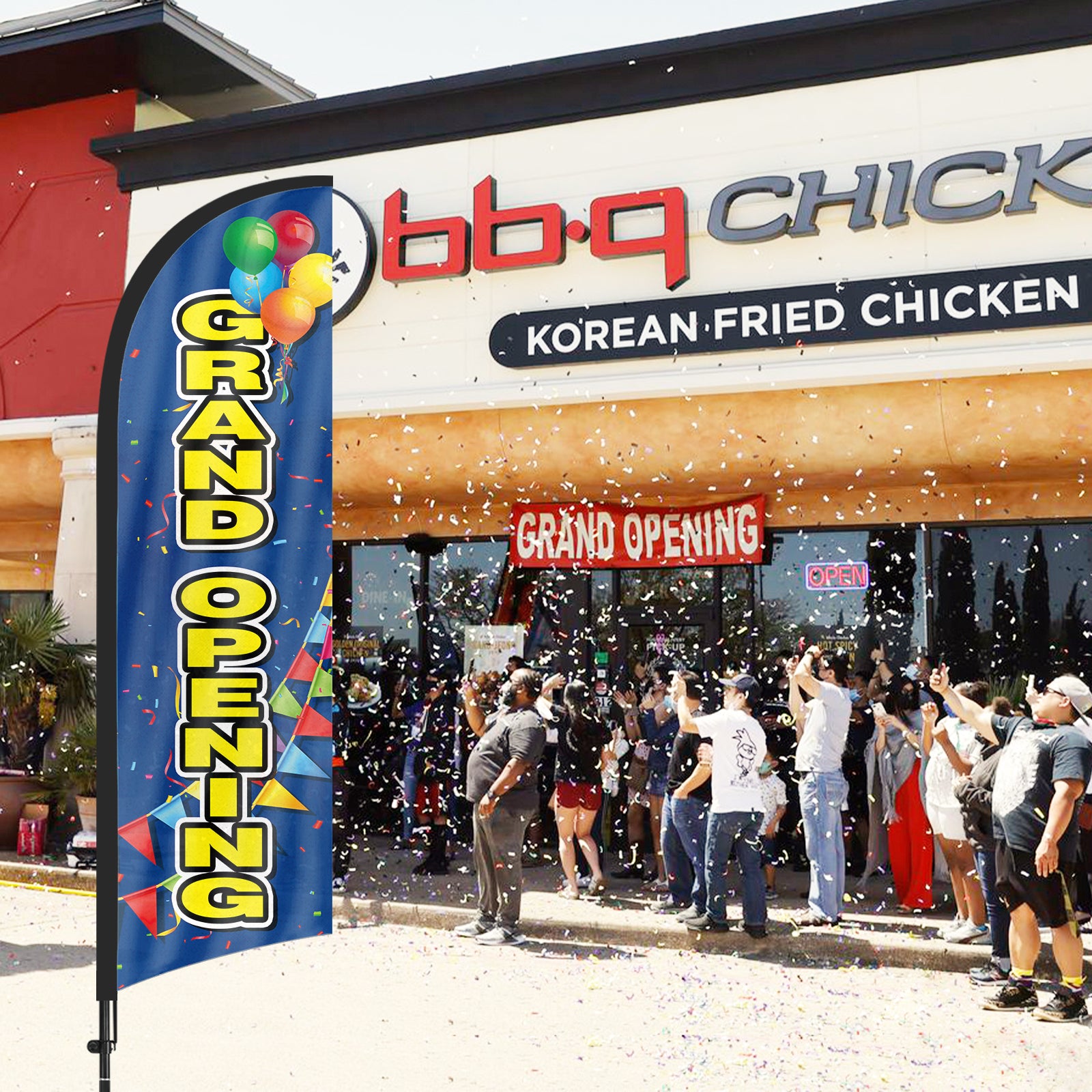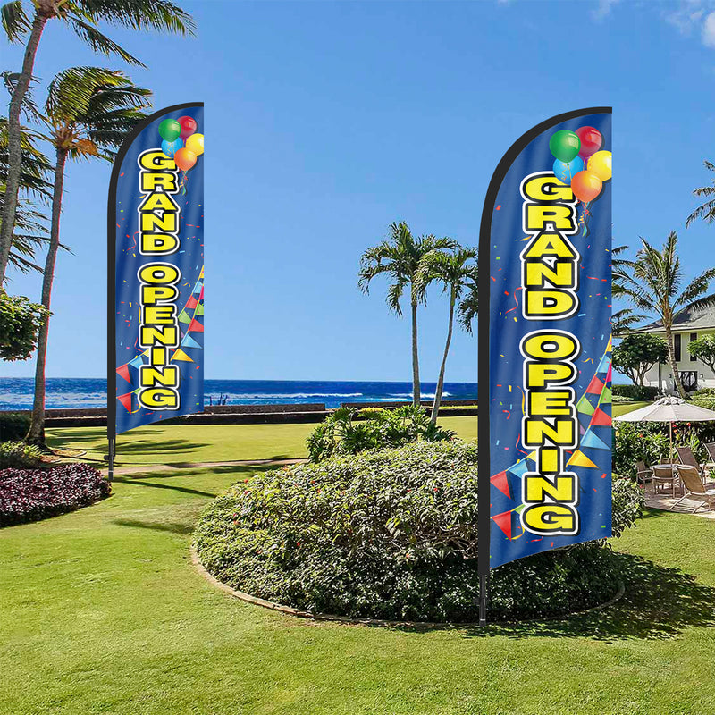 8Ft Grand Opening Blue Feather Flag with Pole and Ground Stake