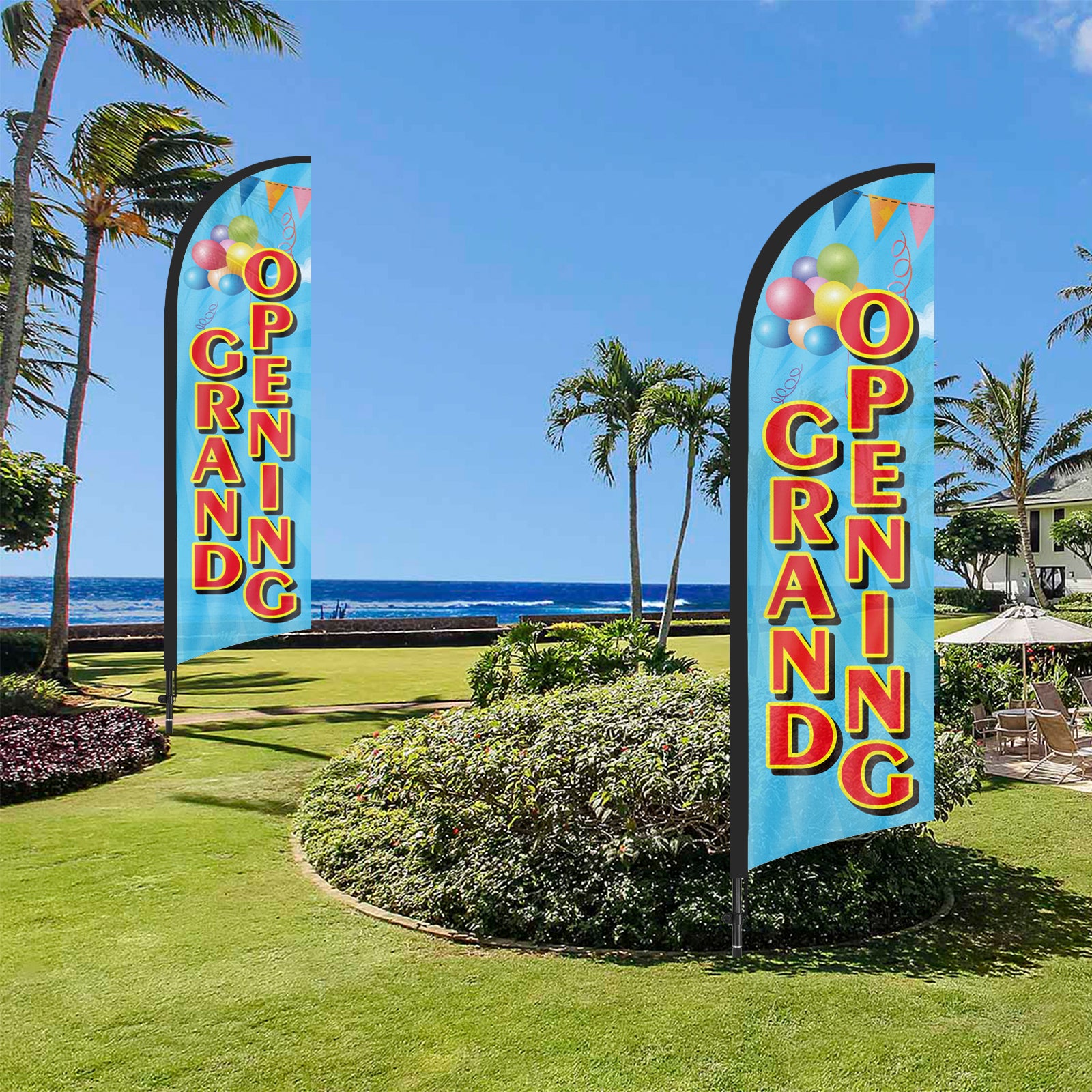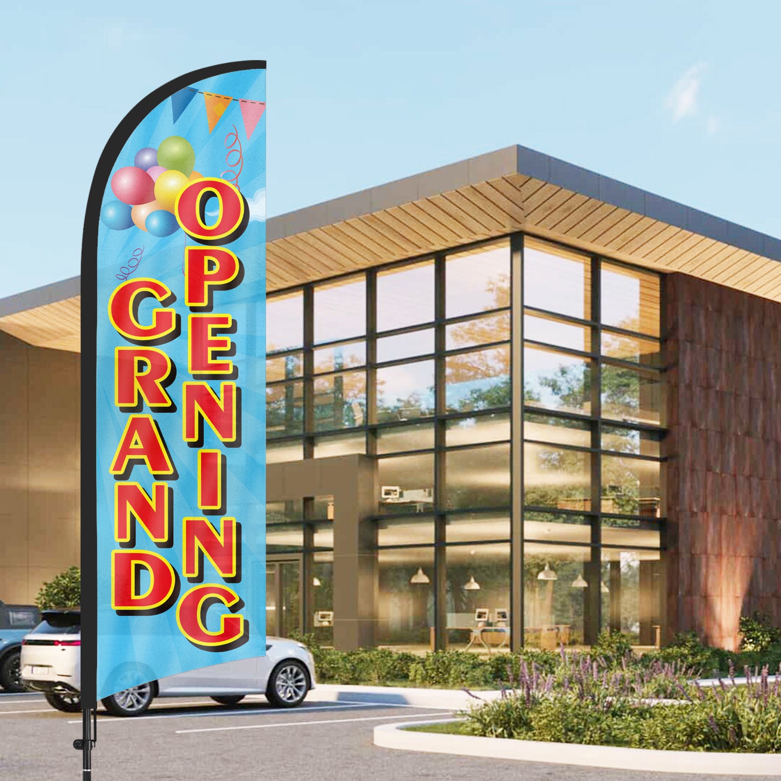 8Ft Grand Opening Blue Feather Flag with Pole and Ground Stake
