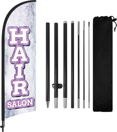 - 【Portable and Easy Setup】This Hair Salon feather flag pole kit includes 1 swooper flag+6 rods+1 ground stake and comes with 1 carry bag. They can be quickly set up and taken down, requiring minimal effort.
