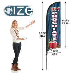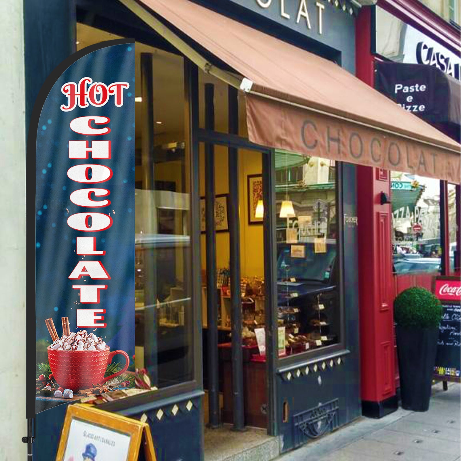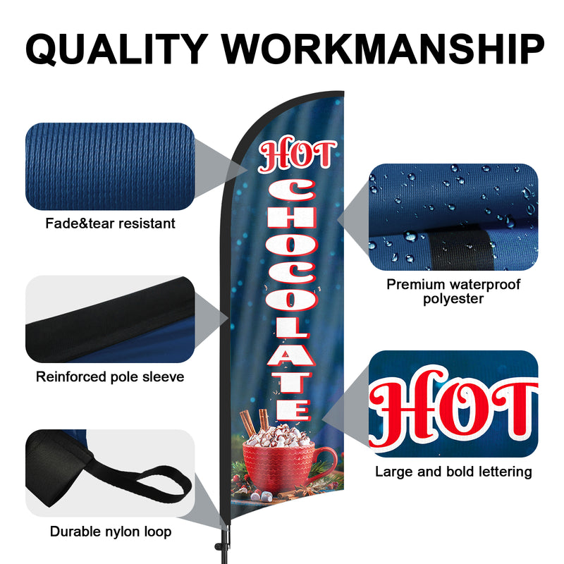 - 【Cost-Effective Advertising】The Hot Chocolate sign offers a cost-effective advertising solution compared to other traditional forms of outdoor advertising. This Hot Chocolate flag size is (8.2ft/98in) tall and (1.8ft/22in) wide, visible enough from far away, ensures your business stands out from the crowd, grabbing attention and increasing foot traffic.