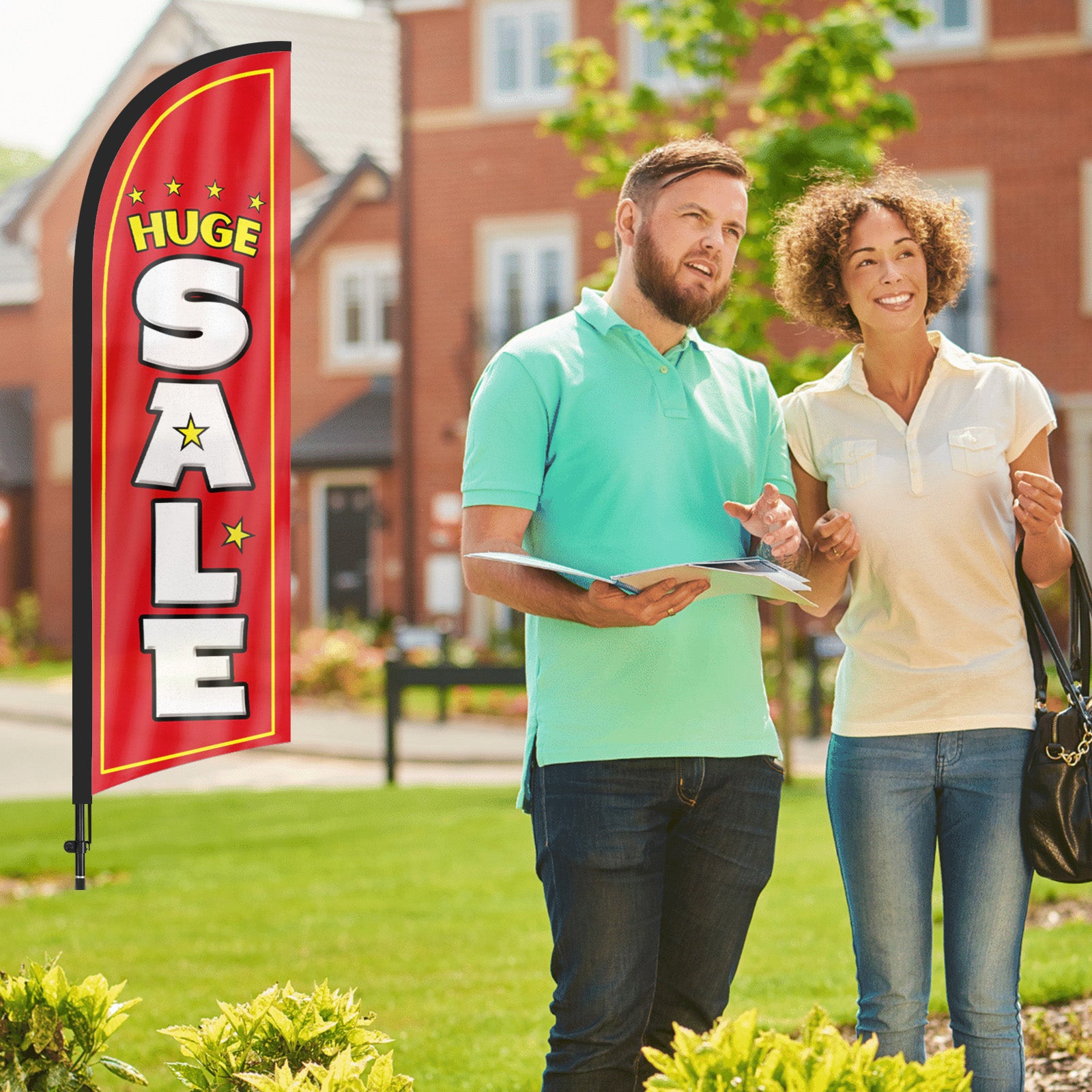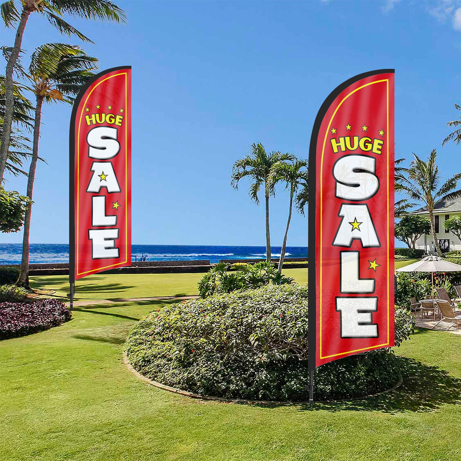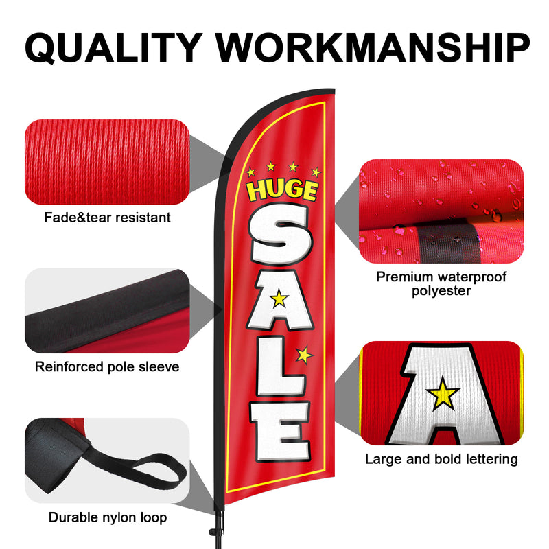 - 【Attention-Grabbing】Huge Sale feather flags stand tall and sway with the wind, making them highly visible and attention-grabbing. The Huge Sale flags’ unique shape and vibrant colors make them stand out in crowded environments, attracting many potential customers from a distance.