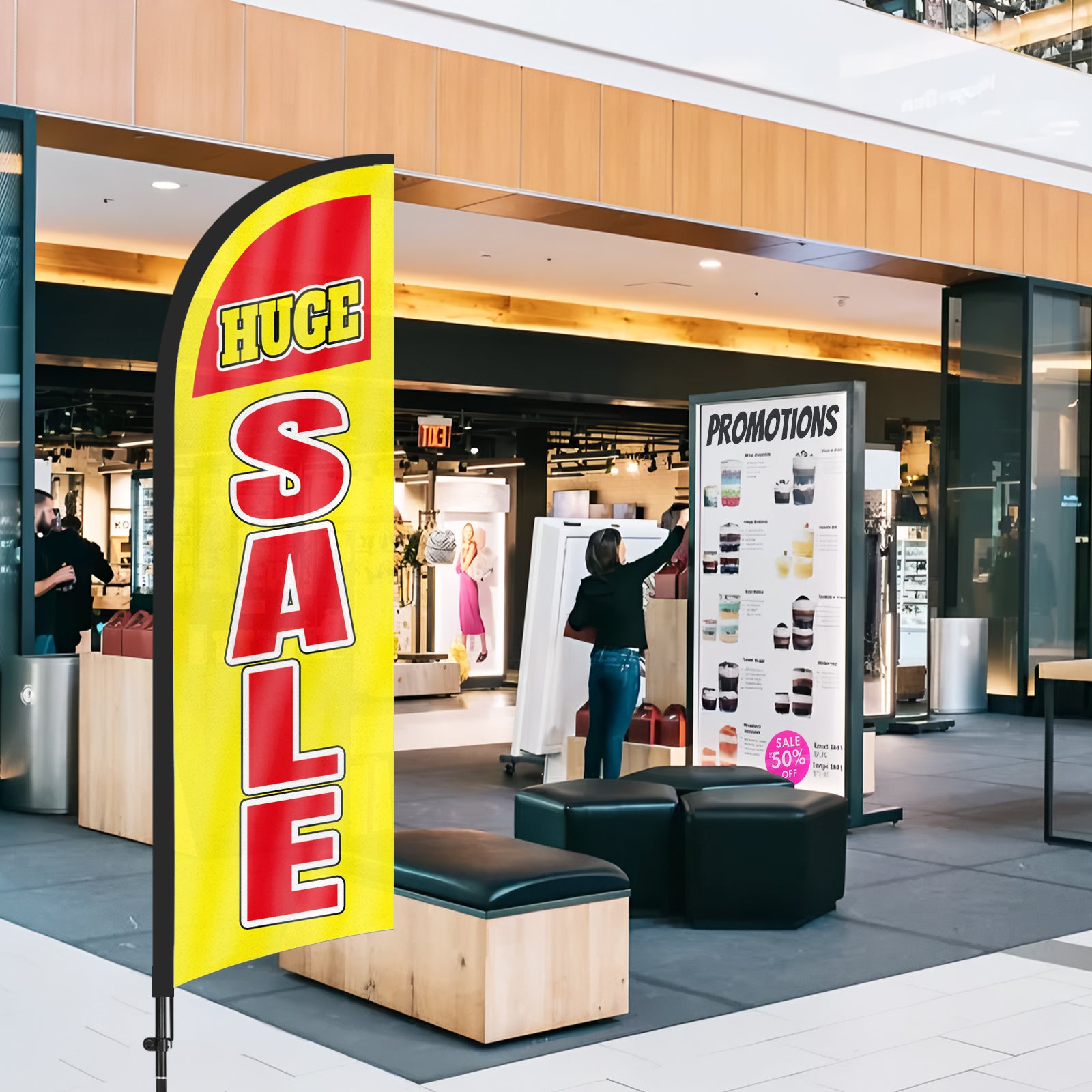 - 【Attention-Grabbing】Huge Sale feather flags stand tall and sway with the wind, making them highly visible and attention-grabbing. The Huge Sale flags’ unique shape and vibrant colors make them stand out in crowded environments, attracting many potential customers from a distance.
