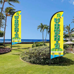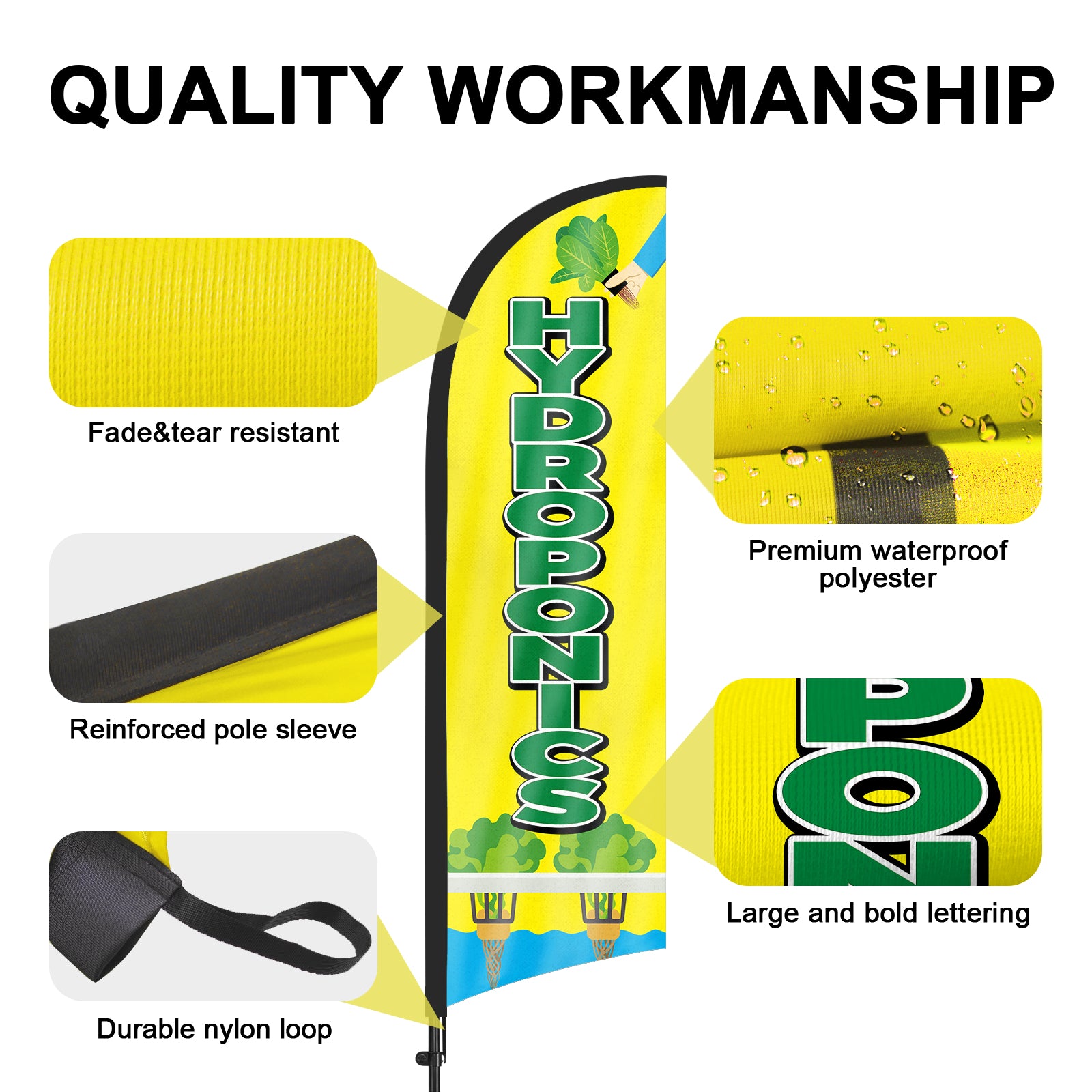 8Ft Hydroponics Yellow Feather Flag with Pole & Stake