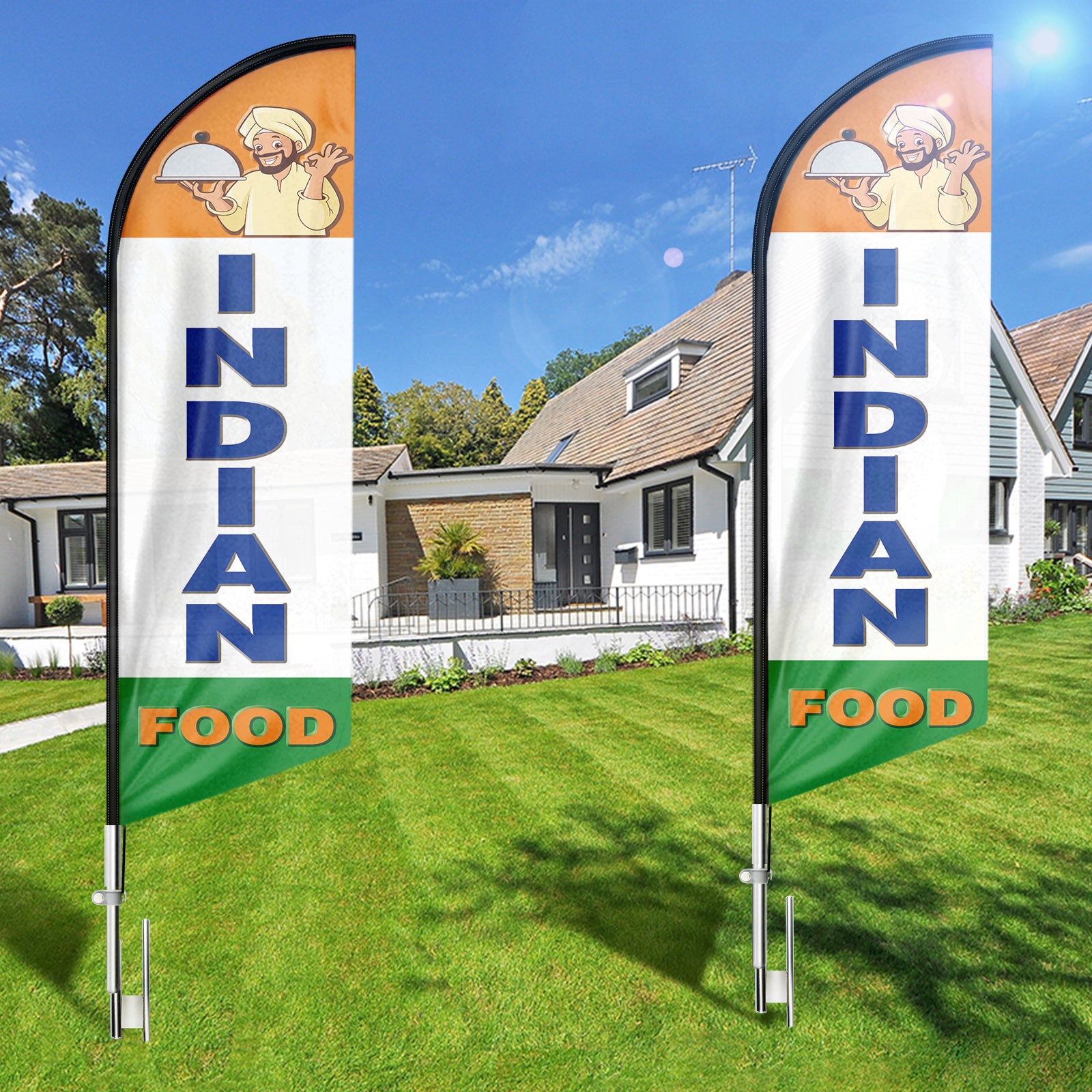 - 【Great Eye Catcher】Our Indian Food Feather Flags will be very eye catching for indoor and outdoor use and make your location or events stand out, the flying feather banner with vibrant colors will grab attention at a distance to attract many new customers to your store.