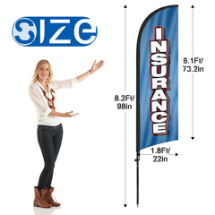 - 【Cost-Effective Advertising】The Insurance sign offer a cost-effective advertising solution compared to other traditional forms of outdoor advertising. This Insurance flag size is (8.2ft/98in) tall and (1.8ft/22in) wide, visible enough from far away, ensures your business stands out from the crowd, grabbing attention and increasing foot traffic.