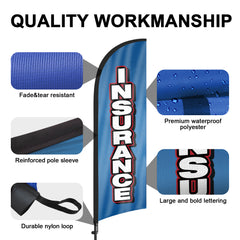 - 【Weather Resistance】These Insurance feather flags are designed to withstand various weather conditions, high-quality aluminum and fiberglass pole, tear resistant polyester fabric making it sturdy and heavy-duty to be held up well even in rain, snow, sleet and strong winds.