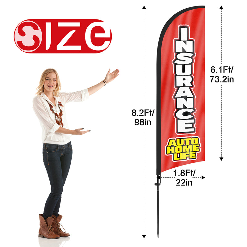 • 【Cost-Effective Advertising】The Insurance sign offer a cost-effective advertising solution compared to other traditional forms of outdoor advertising. This Insurance flag size is (8.2ft/98in) tall and (1.8ft/22in) wide, visible enough from far away, ensures your business stands out from the crowd, grabbing attention and increasing foot traffic.