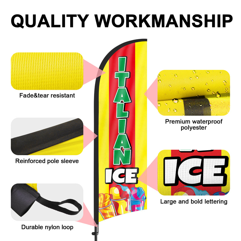 8ft Italian Ice Yellow 01 Feather Flag with Pole and Stake