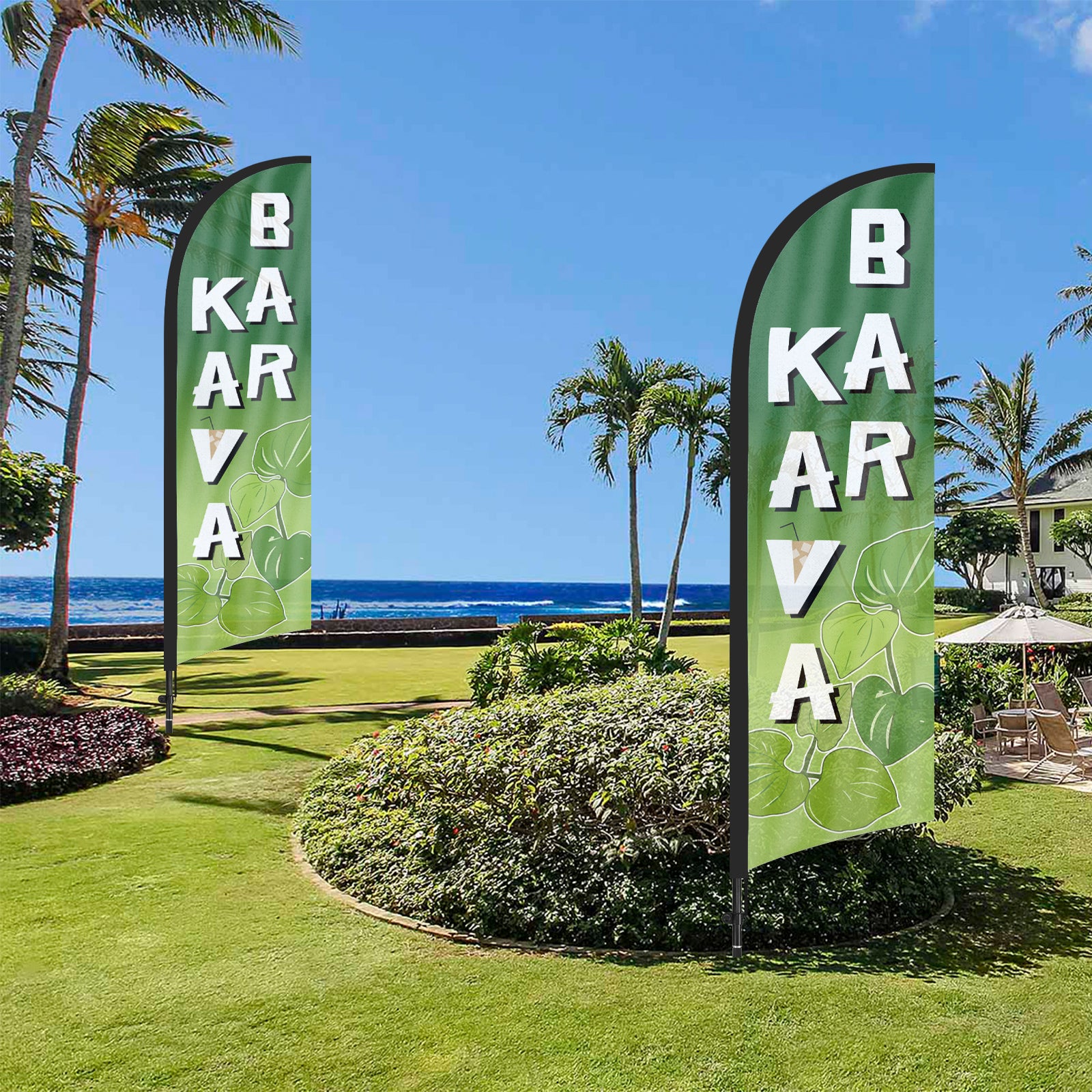 - 【Attention-Grabbing】Kava Bar feather flags stand tall and sway with the wind, making them highly visible and attention-grabbing. The Kava Bar flags’ unique shape and vibrant colors make them stand out in crowded environments, attracting many potential customers from a distance.