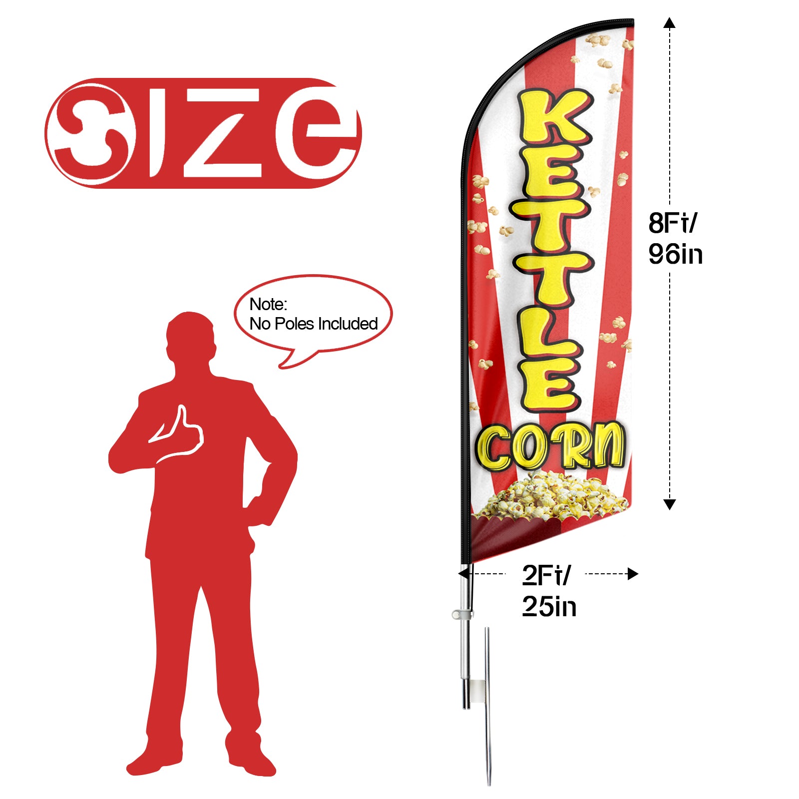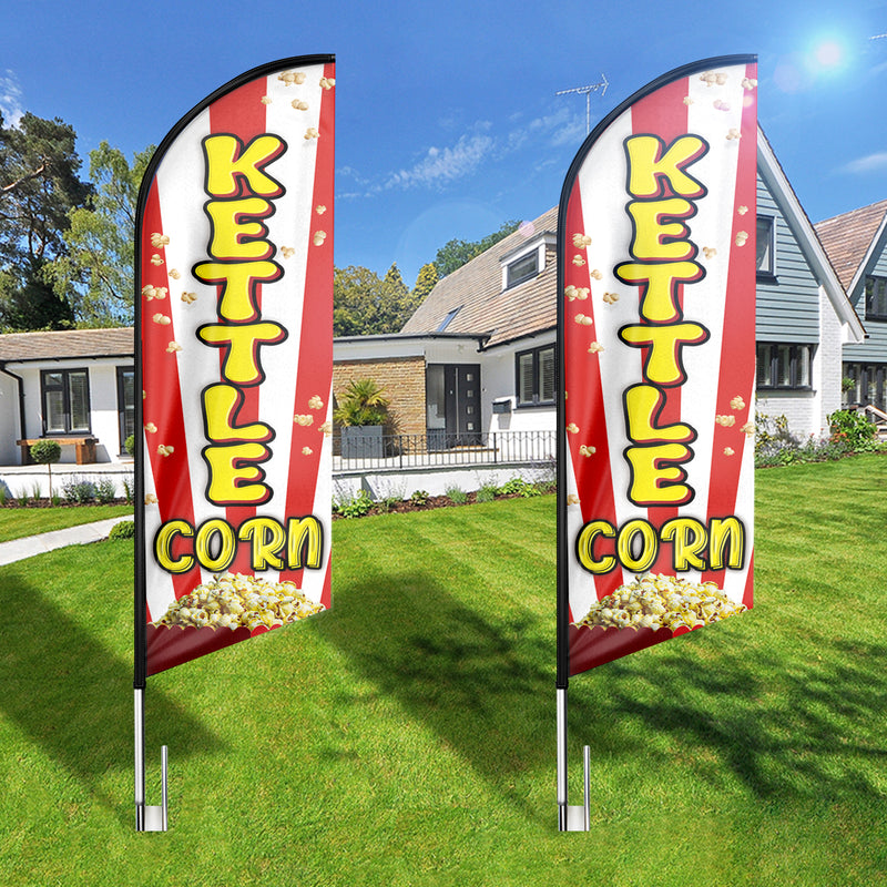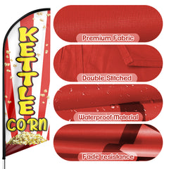 - 【Excellent Advertisement Tool】The Kettle Corn feather flag size is very large (8Ft/96in x 2 Ft/25in) visible enough from far away, you may put the feather banner up in front of your business, at the entry or on the sidewalk.