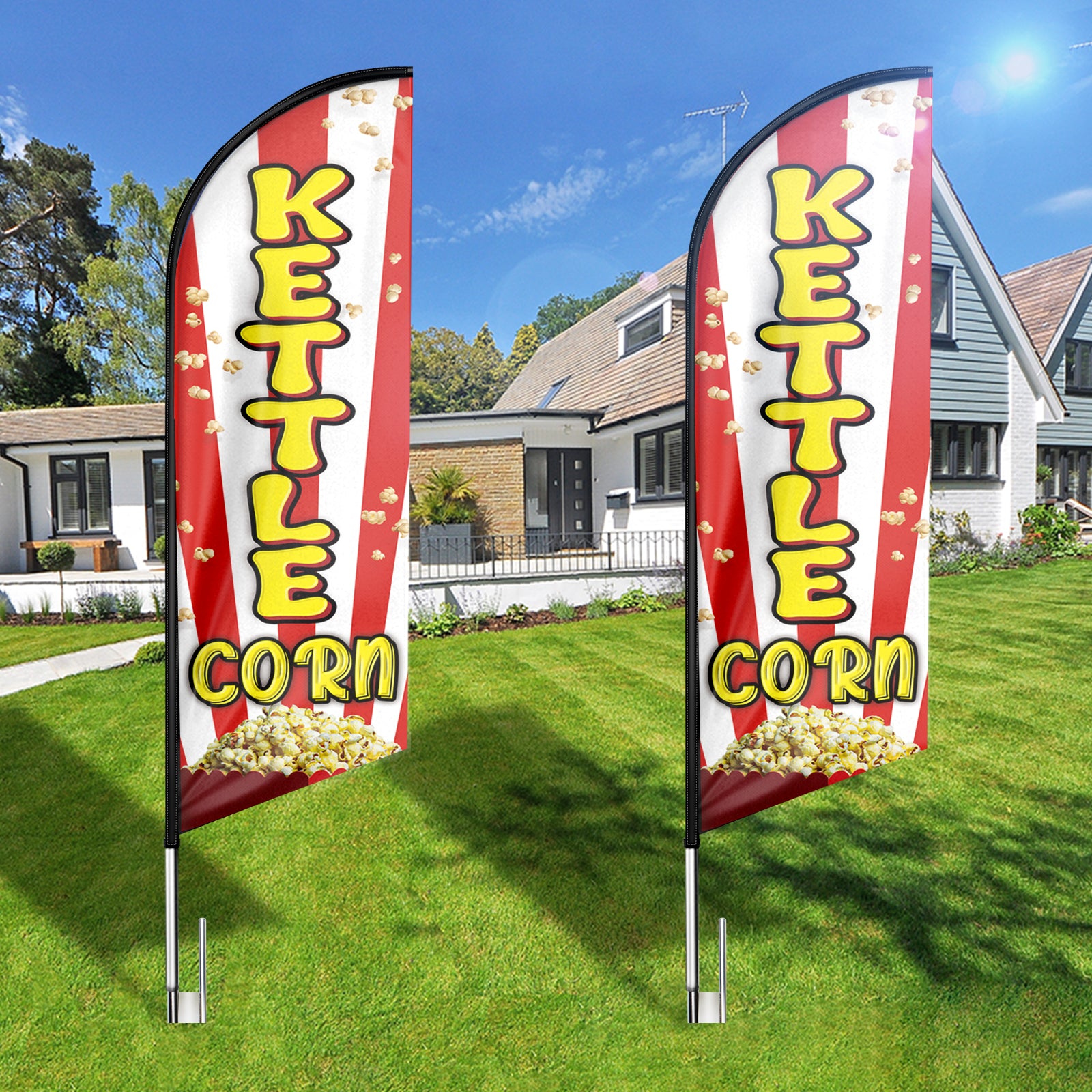 - 【Great Eye Catcher】Our Kettle Corn Feather Flags will be very eye catching for indoor and outdoor use and make your location or events stand out, the flying feather banner with vibrant colors will grab attention at a distance to attract many new customers to your store.
