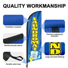 - 【Weather Resistance】These Laundromat feather flags are designed to withstand various weather conditions, high-quality aluminum and fiberglass pole, tear resistant polyester fabric making it sturdy and heavy-duty to be held up well even in rain, snow, sleet and strong winds.