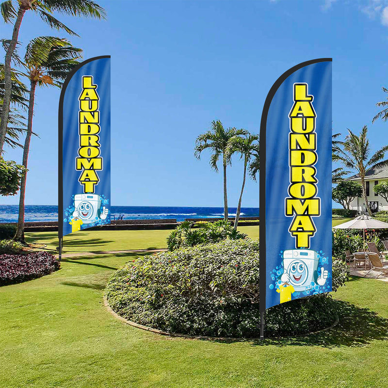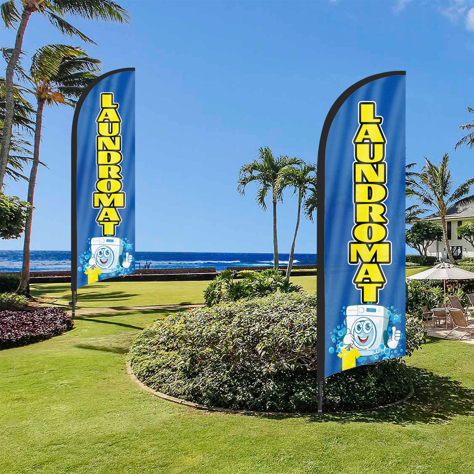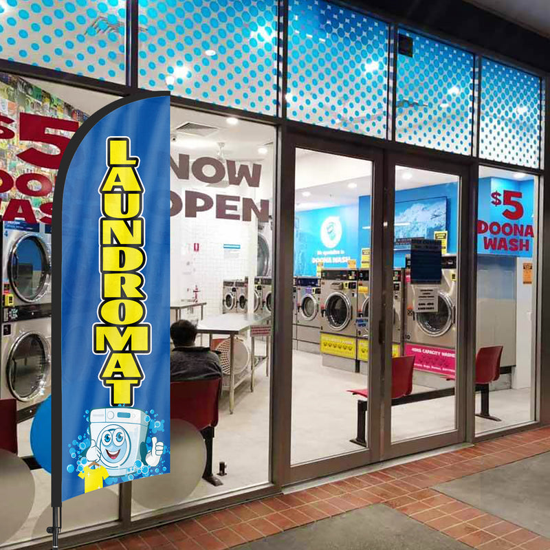 - 【Attention-Grabbing】Laundromat feather flags stand tall and sway with the wind, making them highly visible and attention-grabbing. The Laundromat flags’ unique shape and vibrant colors make them stand out in crowded environments, attracting many potential customers from a distance.