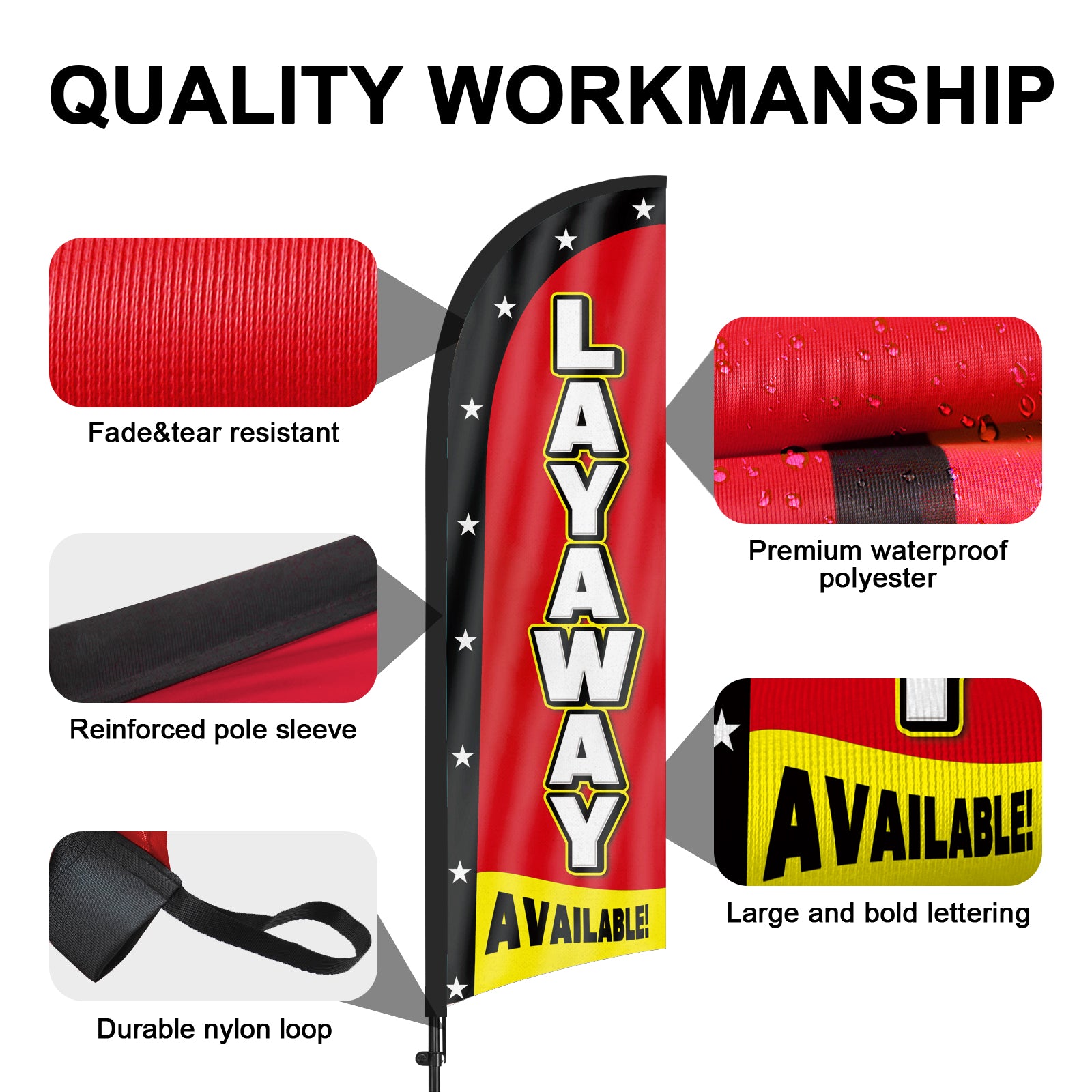 - 【Weather Resistance】These feather flags are designed to withstand various weather conditions, high-quality aluminum and fiberglass pole, tear resistant polyester fabric making it sturdy and heavy-duty to be held up well even in rain, snow, sleet and strong winds.