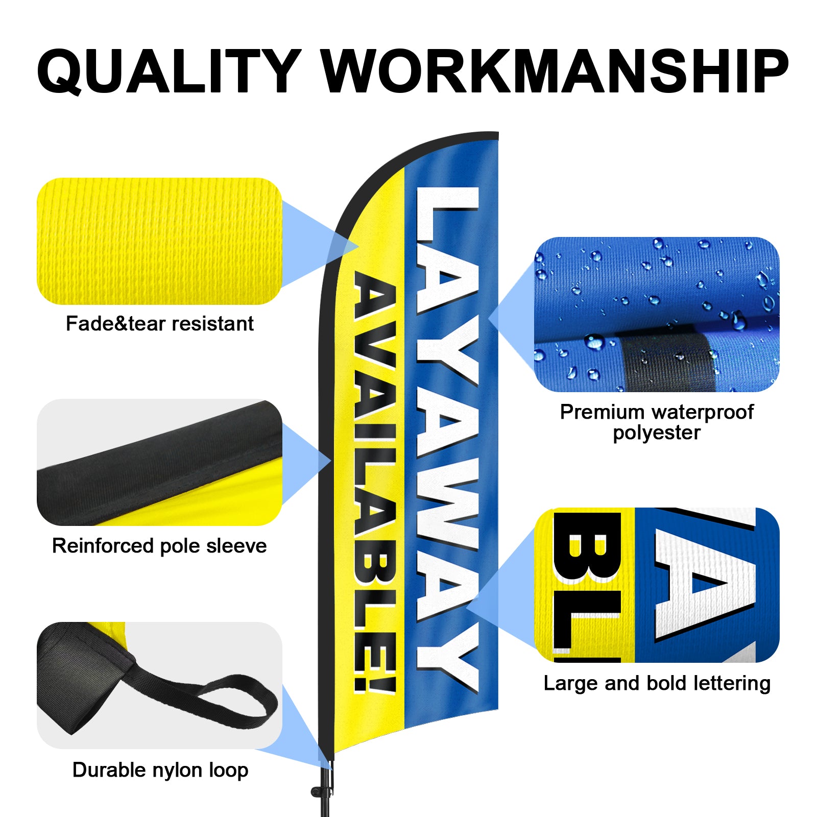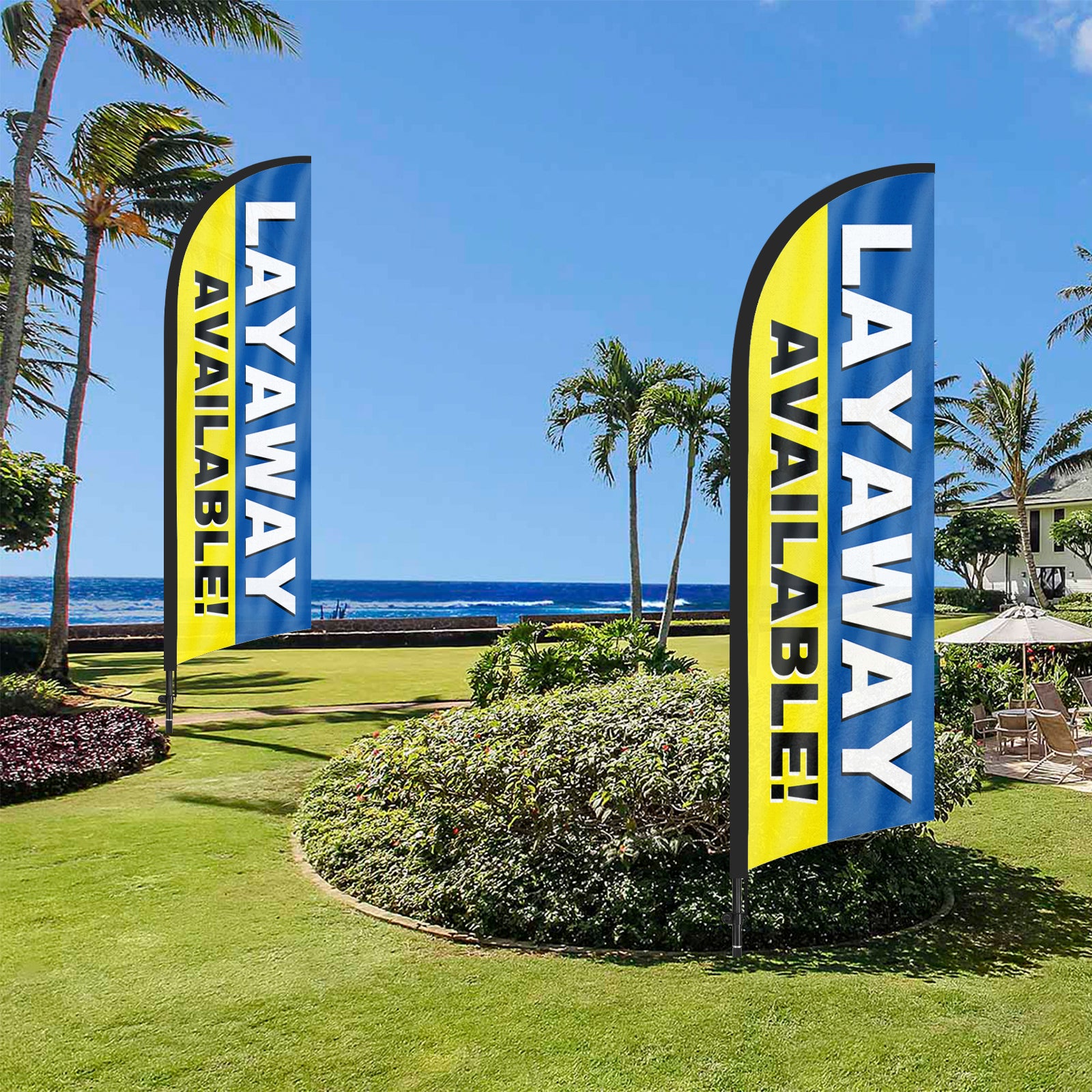 8ft Layaway Available Yellow Feather Flag with Pole and Stake
