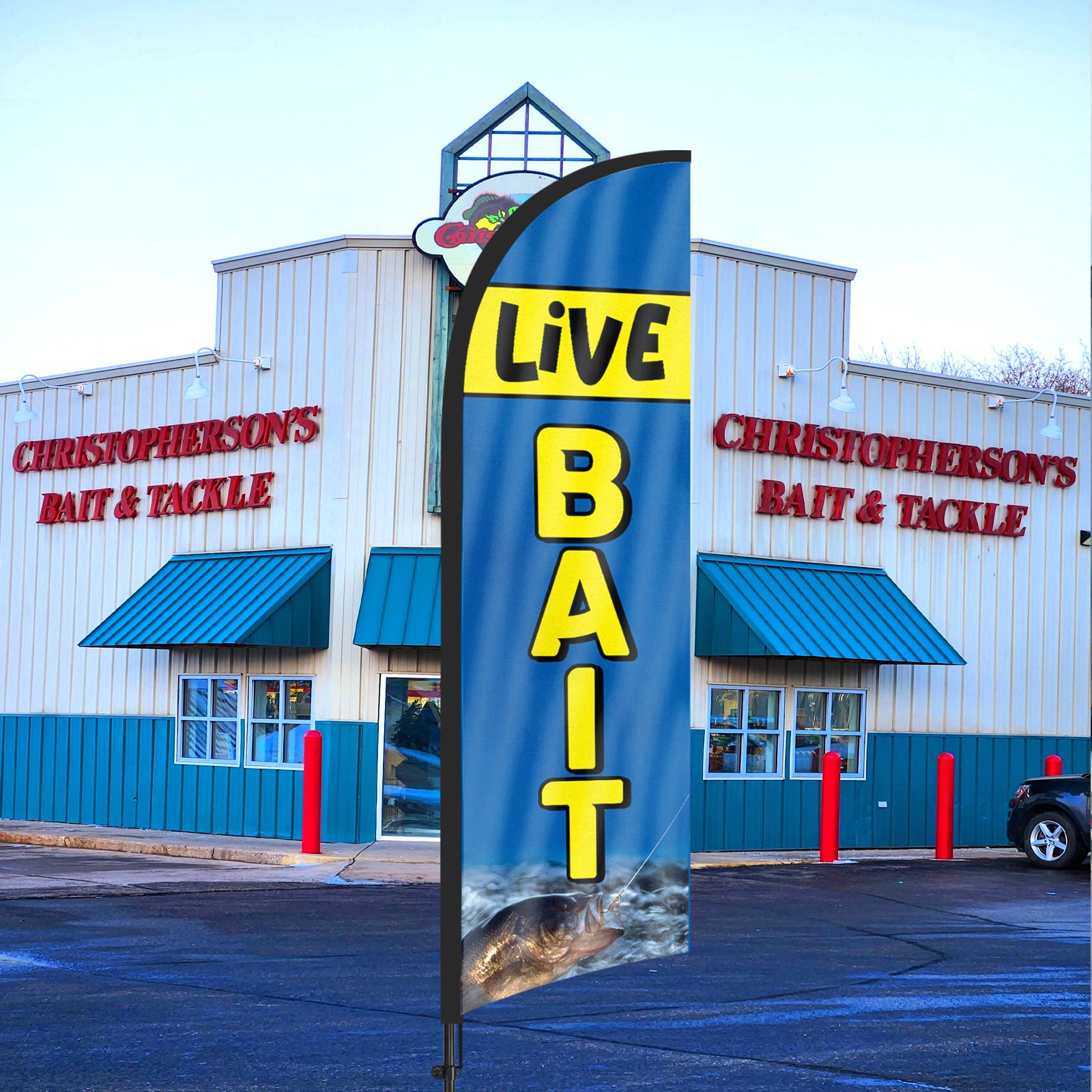 8Ft Live Bait Feather Flag with Pole & Stake